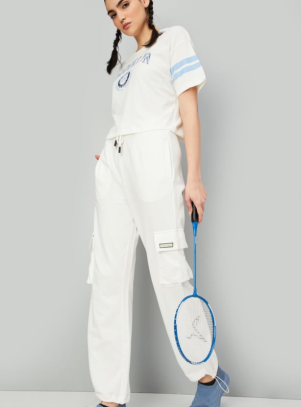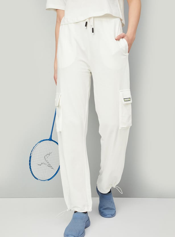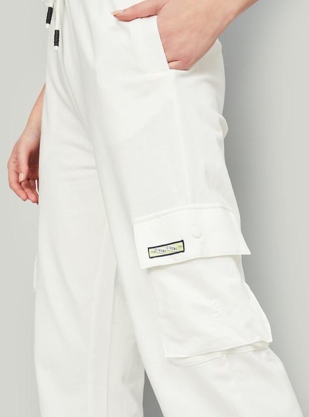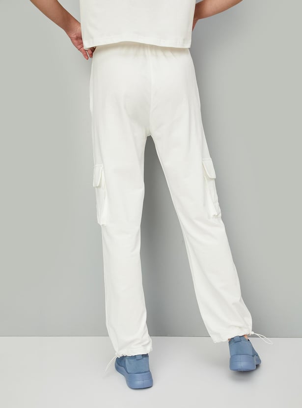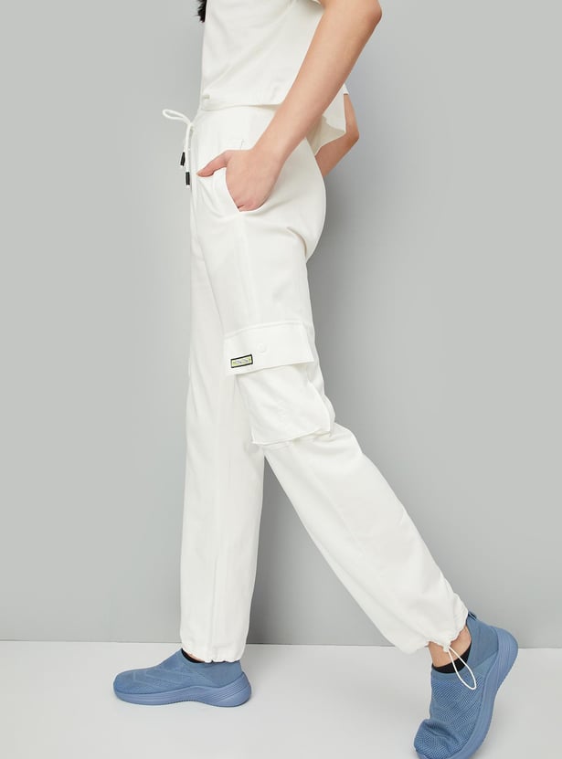 Upgrade your bottom-wear collection with these solid cargo pants featuring multiple pockets and a drawstring closure. The monochromatic color scheme of these cargo pants seamlessly transitions from outdoor adventures to urban streetwear. These pants are a dependable choice for those who value both utility and on-trend style in their everyday wardrobe.