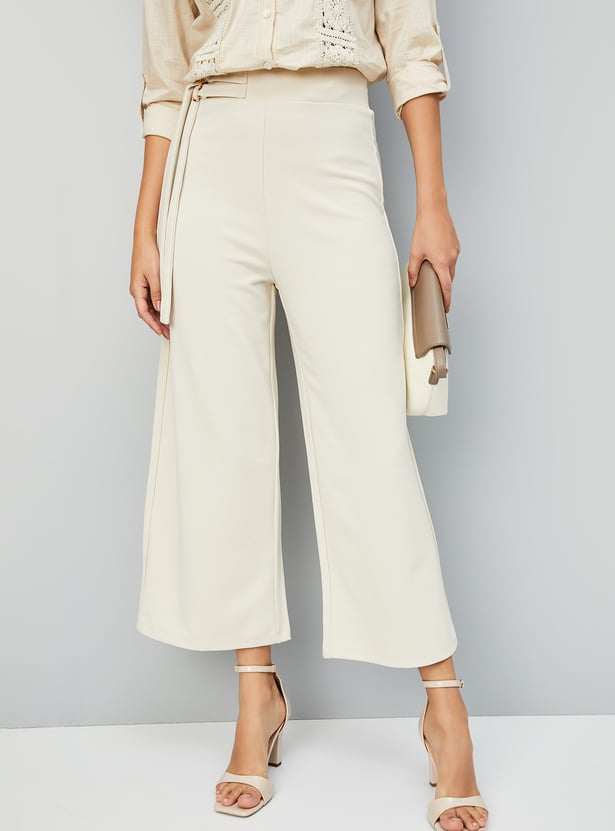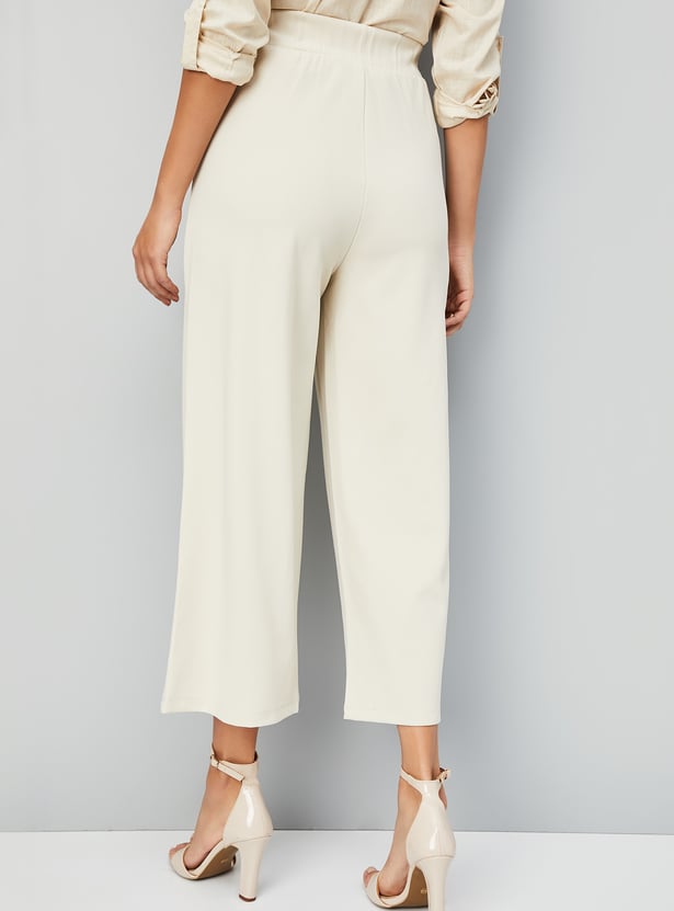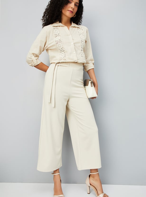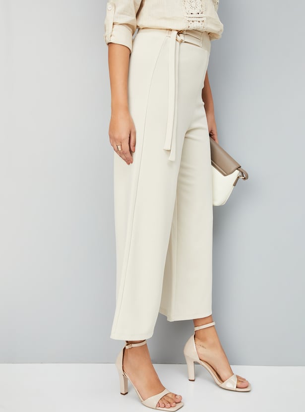 Effortlessly elevate your everyday style with these solid belted wide leg culottes. Designed crop length, functional pockets and a flattering fit, they blend comfort with polish for any occasion.