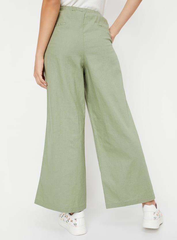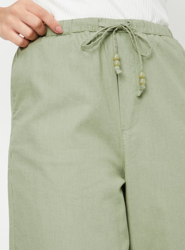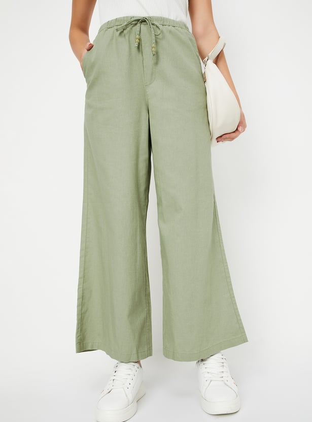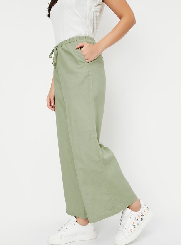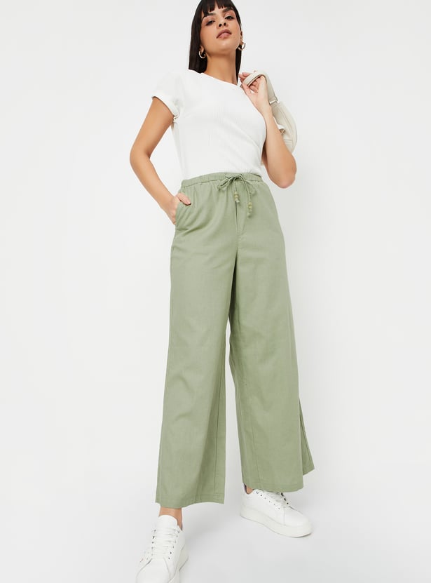 Relax in comfort and style with these solid wide-leg trousers. Designed with a drawstring closure for a customizable fit, they also feature convenient insert pockets for added practicality. Model Size :
