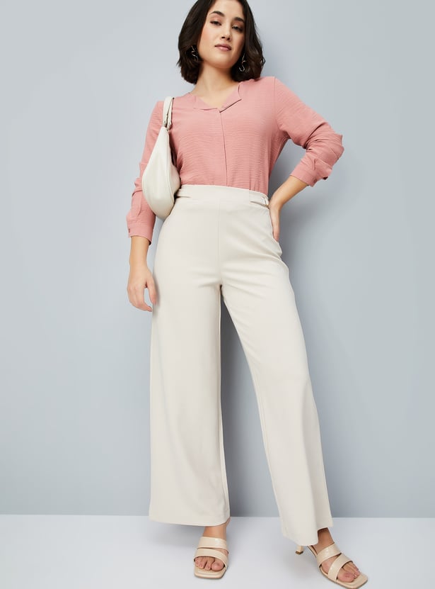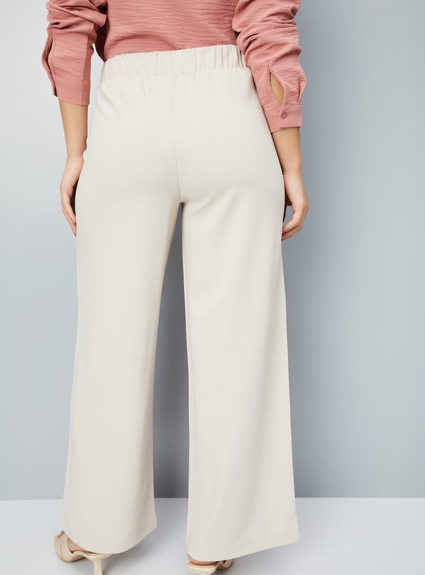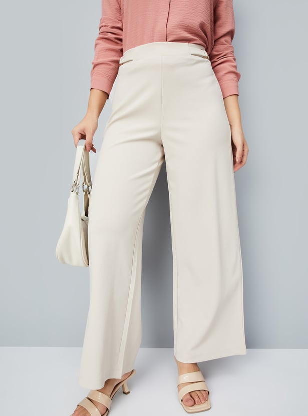 Women Solid Wide Leg Trousers