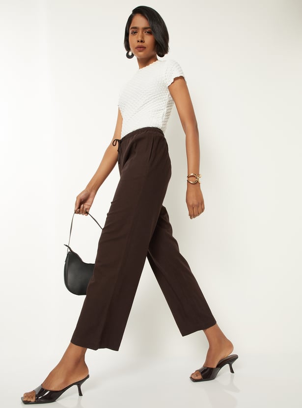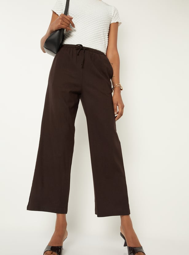 Women Solid Wide Leg Trousers