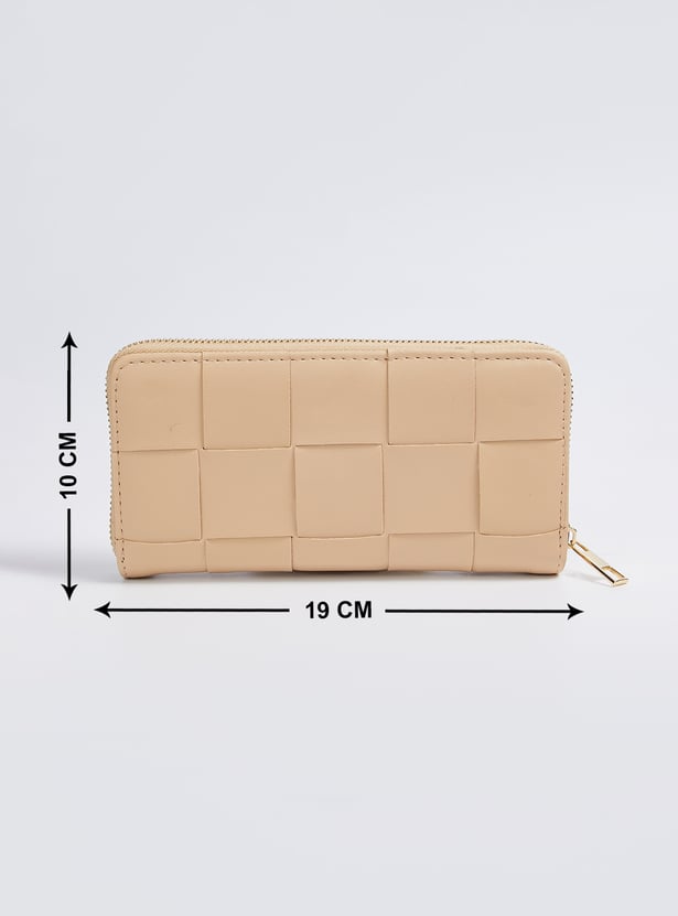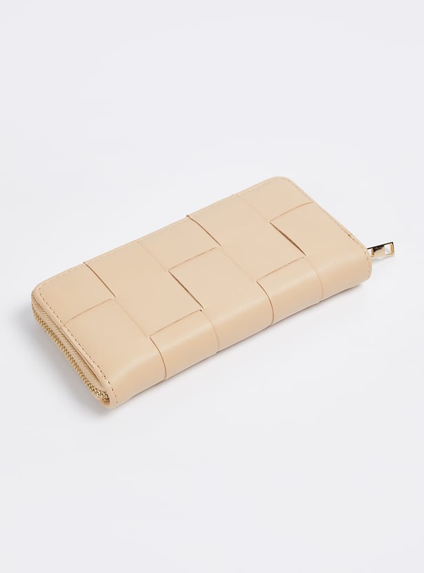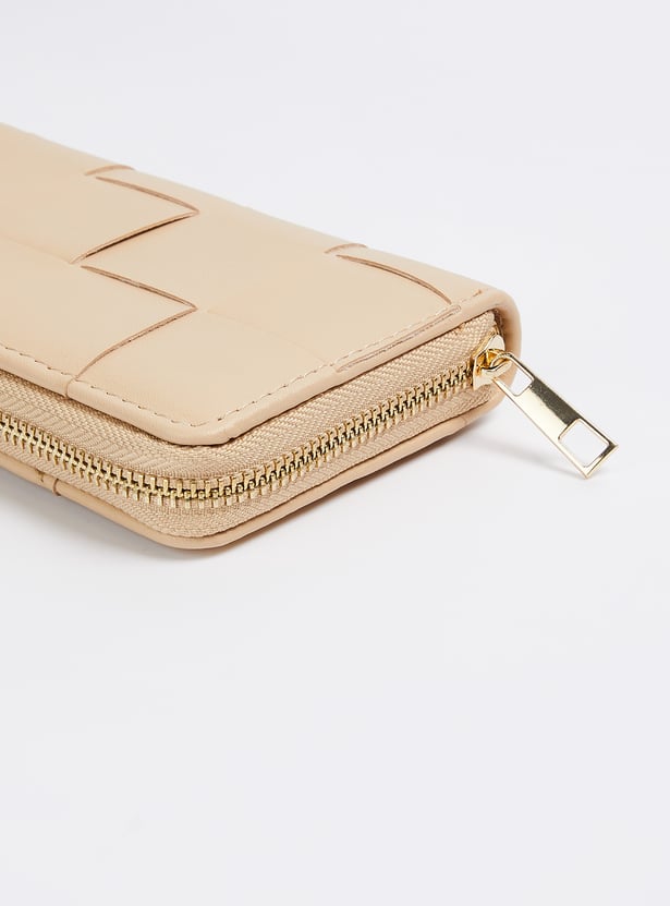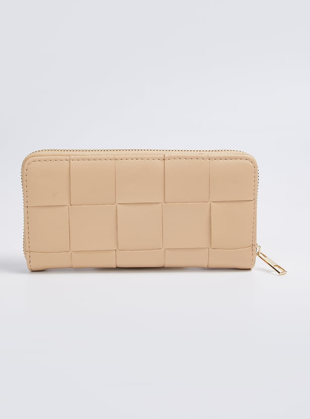 Keep your essentials organized and secure with this elegant zip-around wallet. Featuring a solid surface and panelled design, it combines style with functionality. The spacious compartments and multiple card slots offer ample storage, while the zip closure ensures everything stays in place.