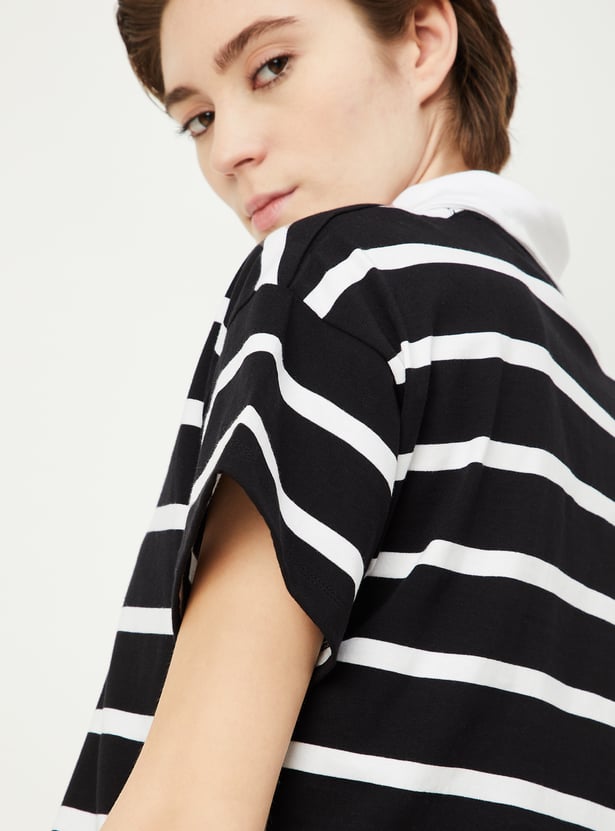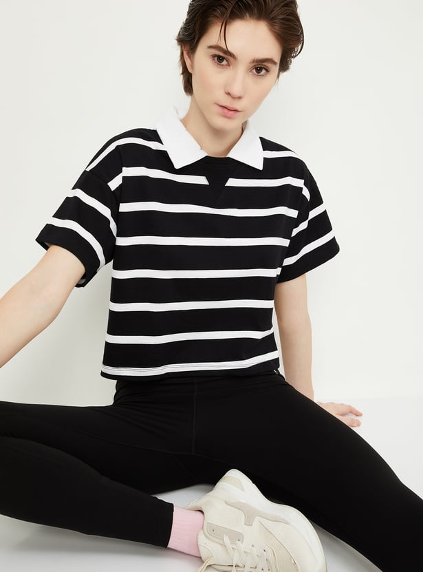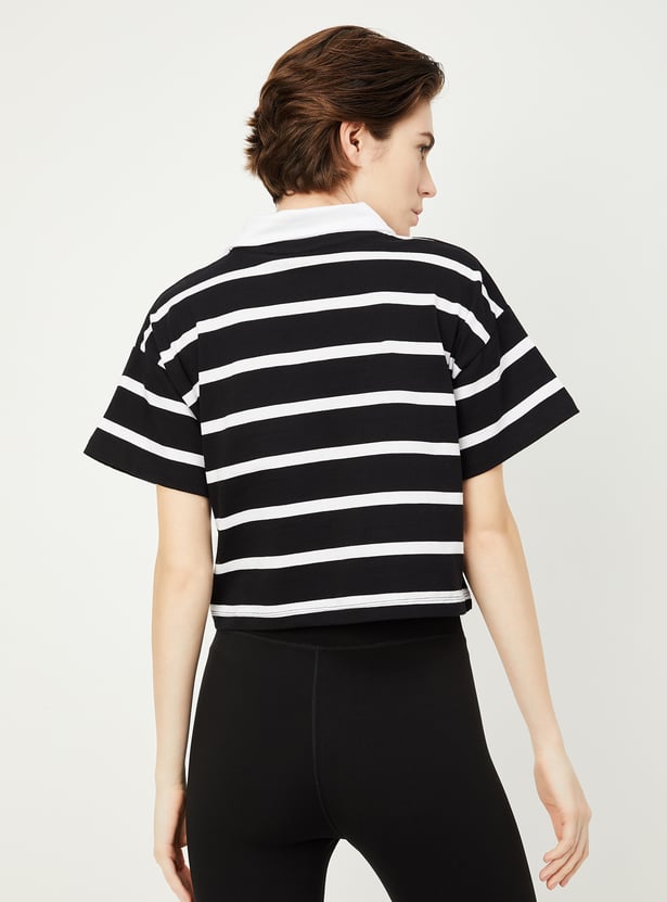 Women Striped Athleisure Polo T-shirt