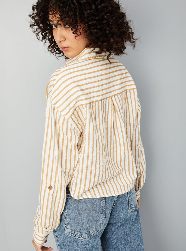 Women Striped Cropped Shirt