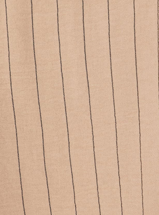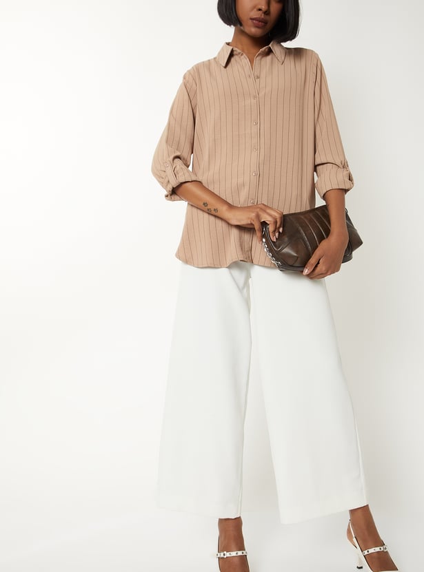 A classic striped full-sleeve shirt with a spread collar, button-down closure, and button cuffs with a roll-up design for a structured fit. Ideal for office wear or smart-casual ensembles. Model Size :