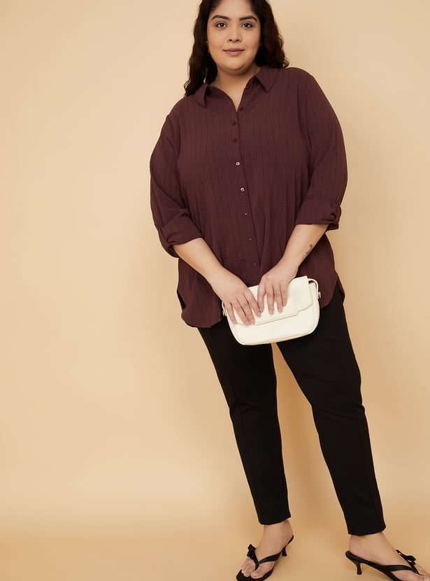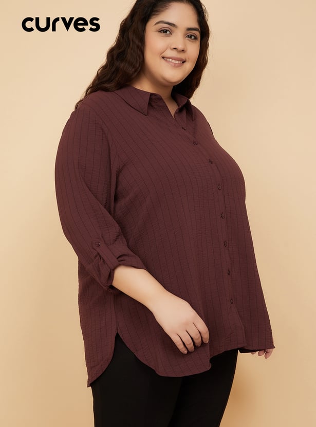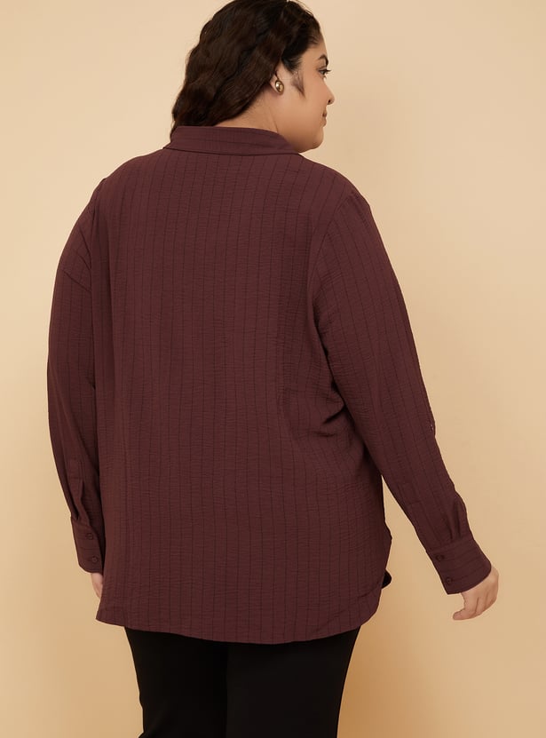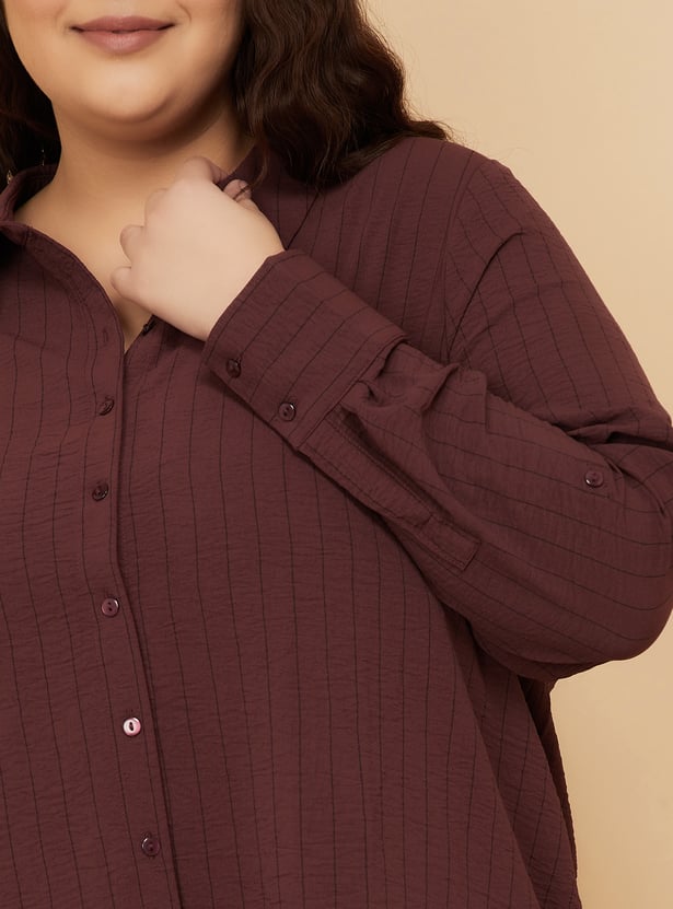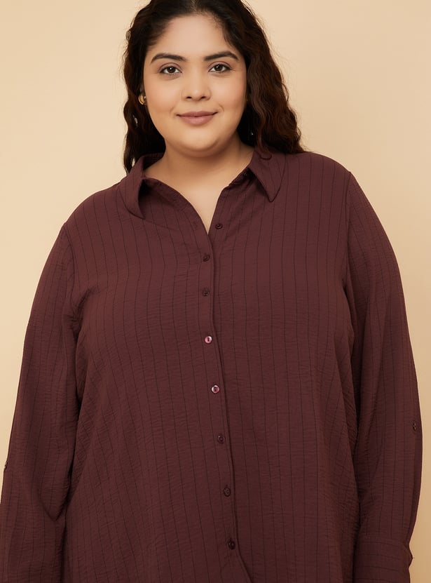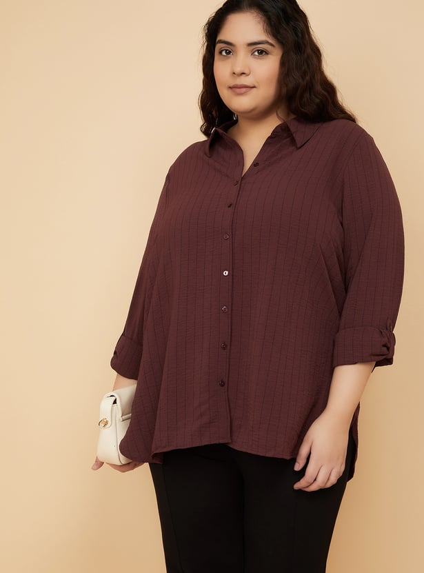 A classic striped full-sleeve shirt with a spread collar, button-down closure, and button cuffs with a roll-up design for a structured fit. Ideal for office wear or smart-casual ensembles. Model Size :