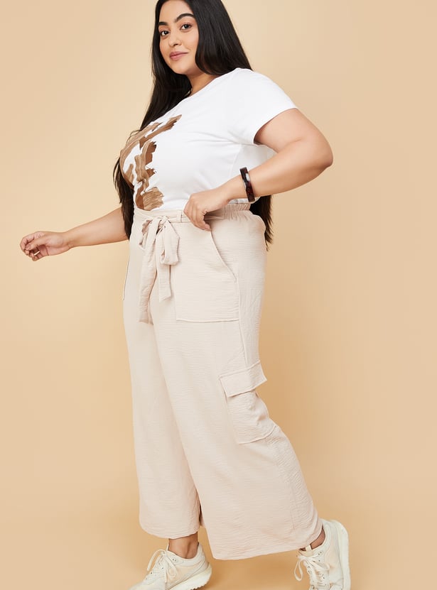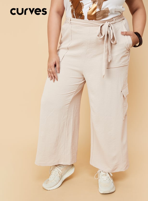 Women Textured Belted Cargo Trousers