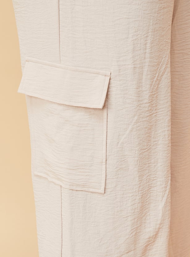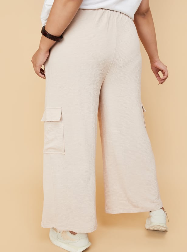 Breeze through the day in style with these trousers. Featuring a textured finish, wide-leg silhouette, and full-length profile, they come with a partially elasticated waist with a fabric tie-up, cross pockets, and cargo pockets for added functionality.