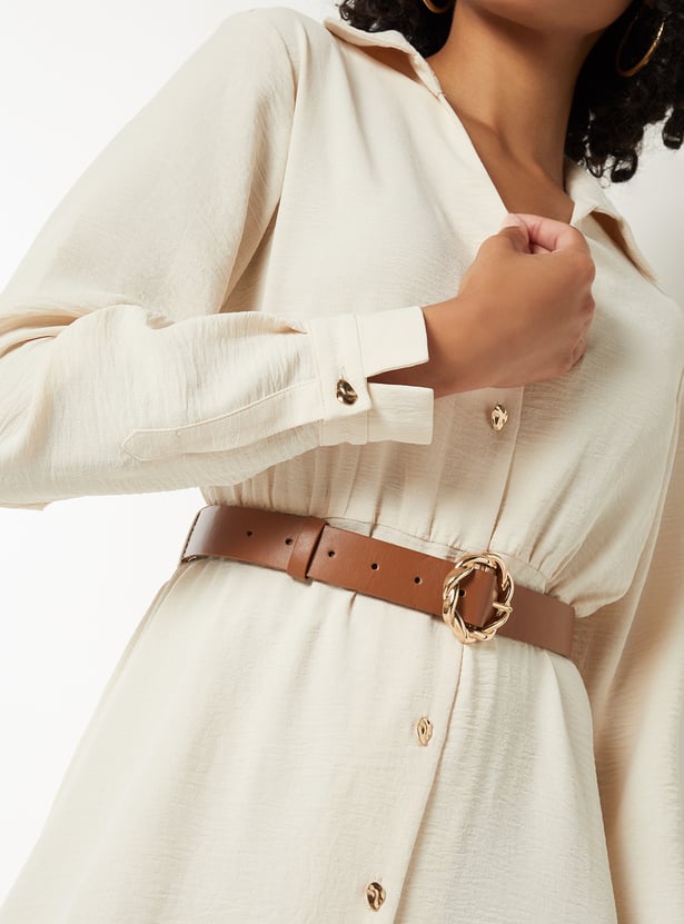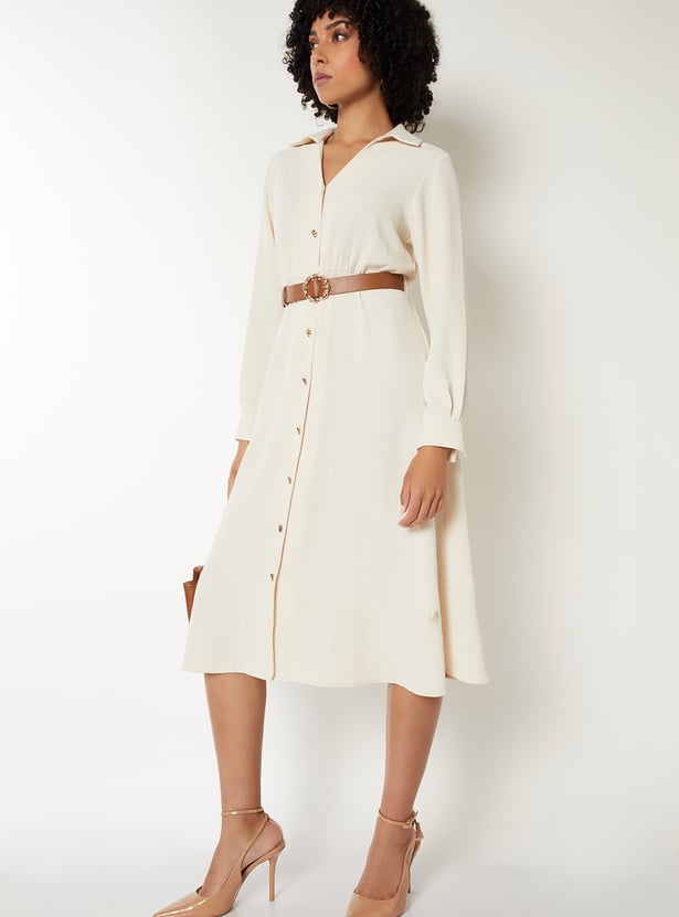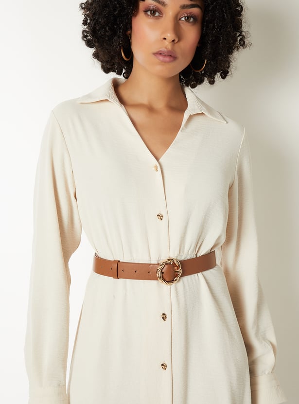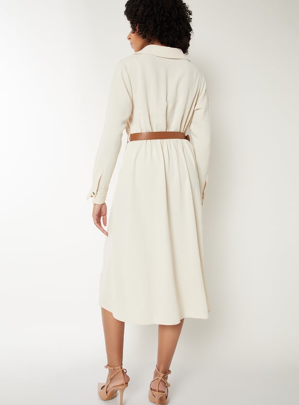 Women Textured Belted Shirt Dress