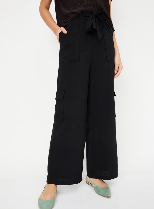 These textured cargo trousers combine utility with everyday comfort. Featuring a drawstring closure, relaxed fit, mid-rise, and multiple pockets, they offer a relaxed fit with a rugged edge—ideal for off-duty days or casual adventures.