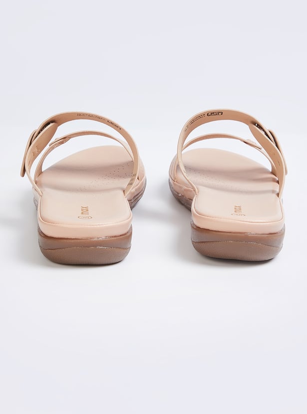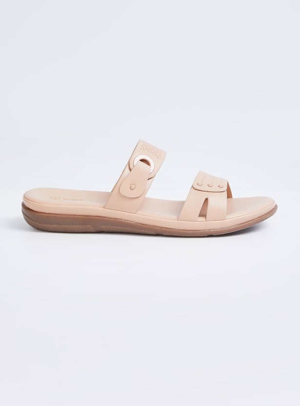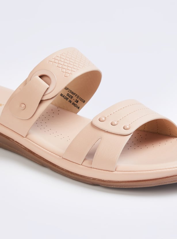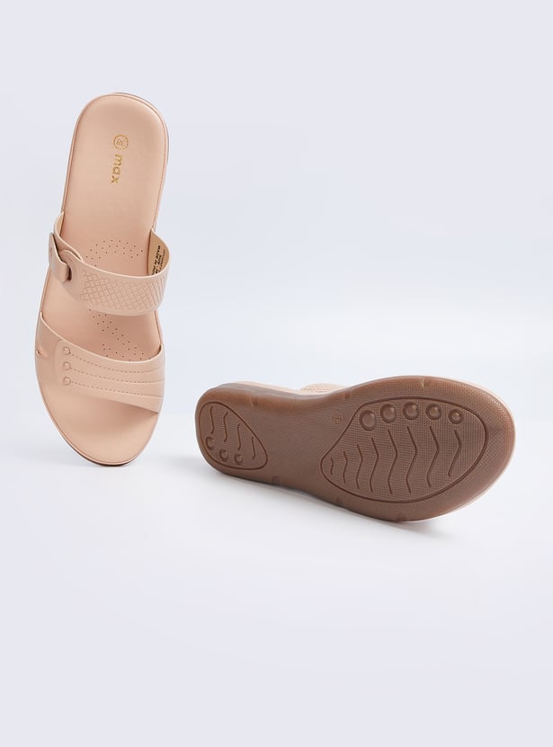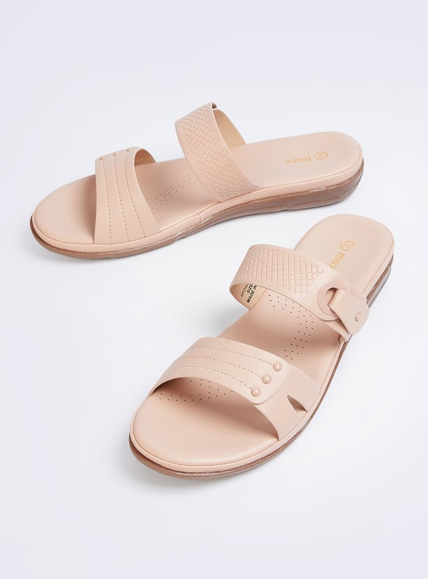 Step into comfort and style with these textured flats featuring dual straps and a slip-on design. These versatile shoes are perfect for adding a laid-back yet trendy vibe to any outfit.