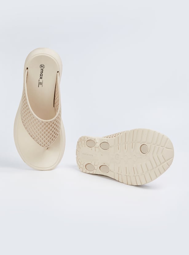 Experience ultimate comfort in these molded flip flops feature a stylish textured V-strap design, offering a comfortable and secure fit. The molded footbed provides extra support, making them ideal for all-day wear.