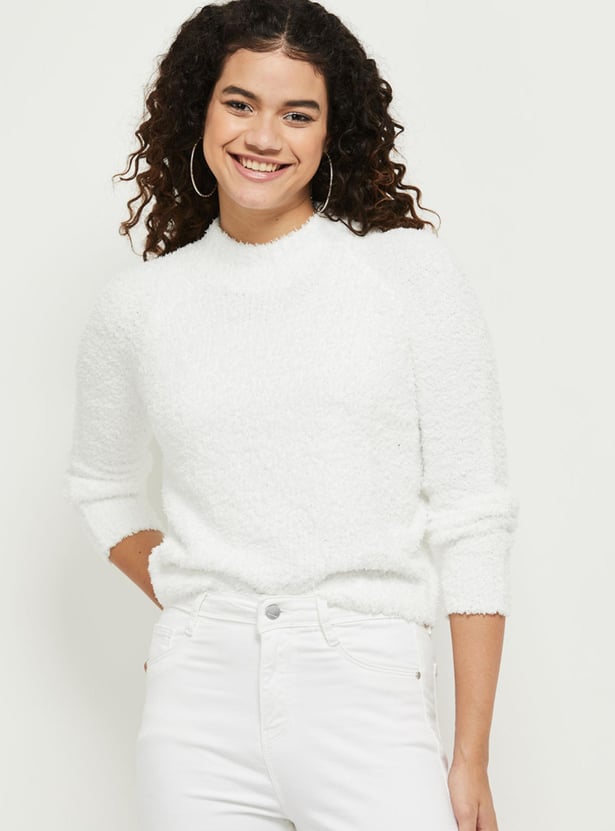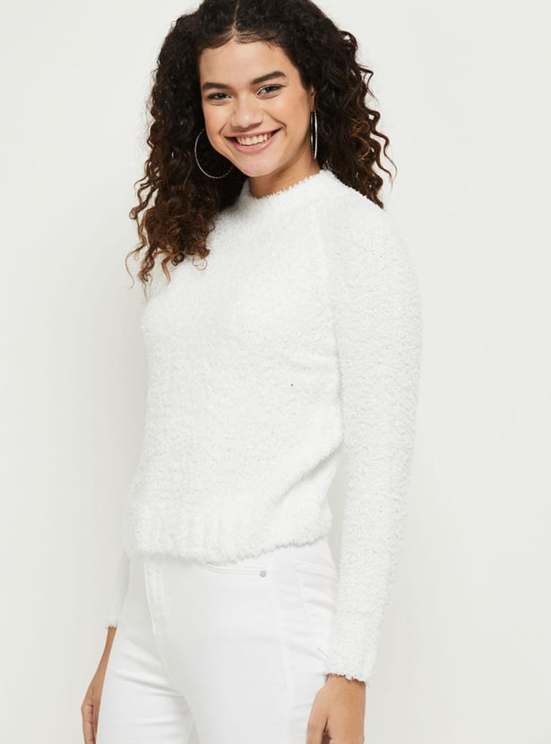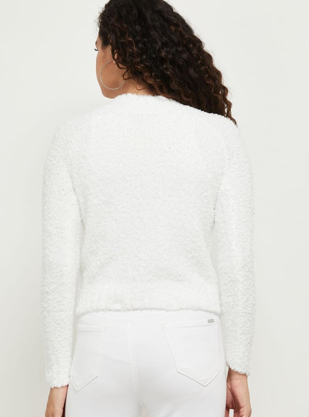 Women Textured Full Sleeves Round Neck Sweater