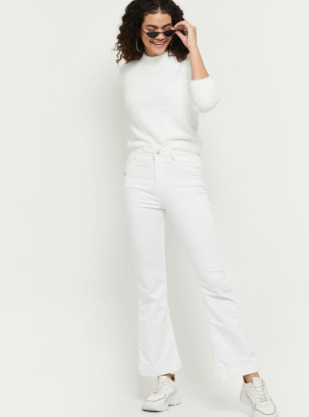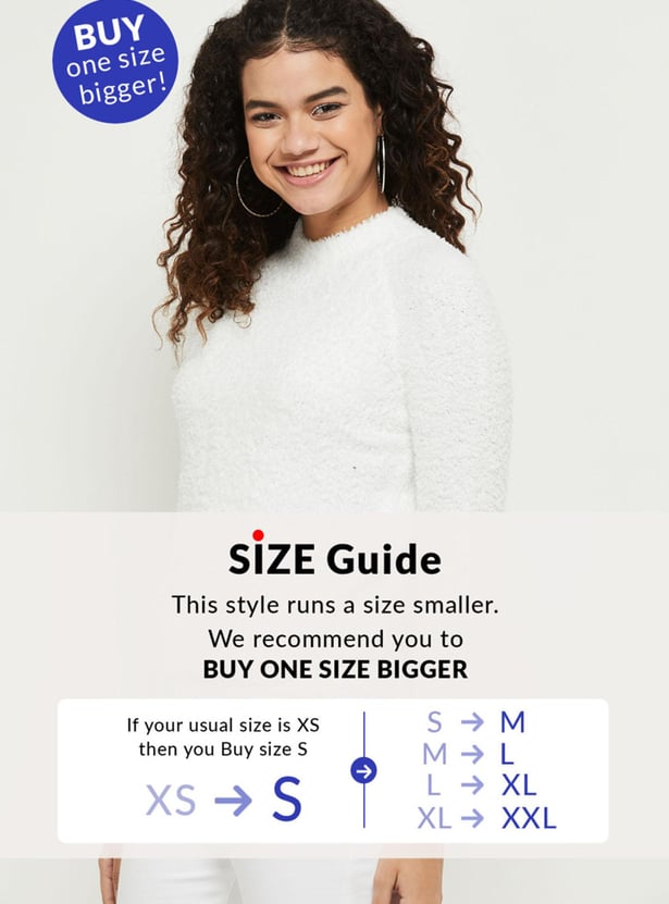 Upgrade your wardrobe this winter season with this sweater designed with a textured surface, round neckline, and full sleeves.