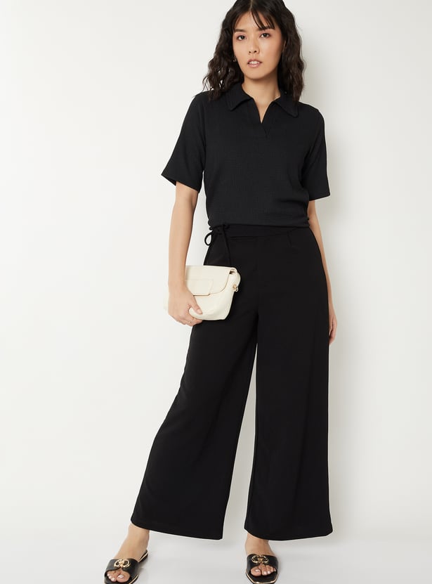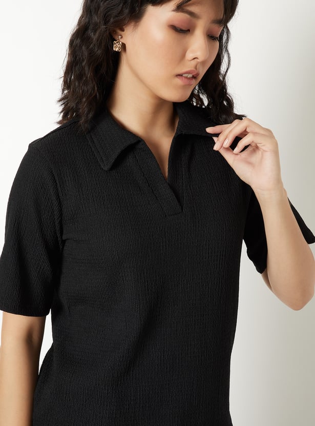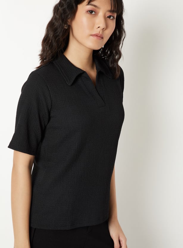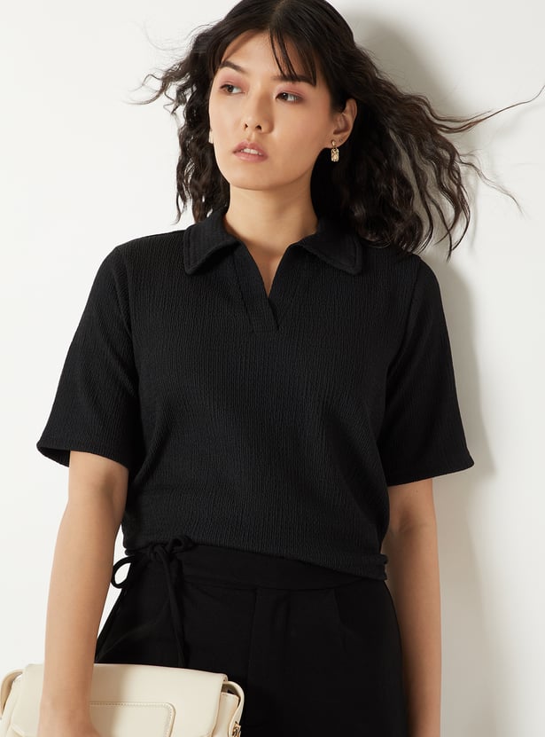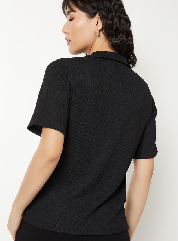Women Textured Johnny Collar T-shirt