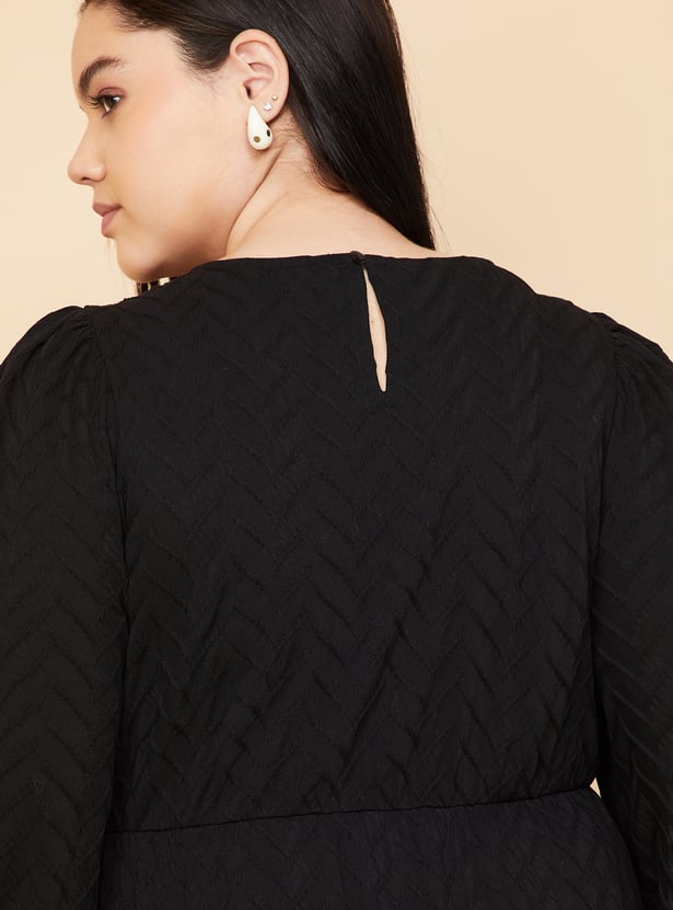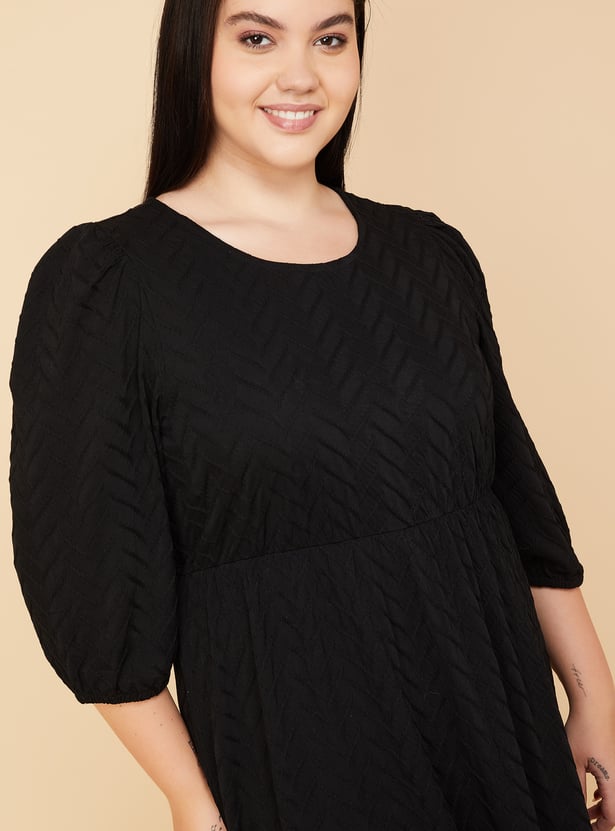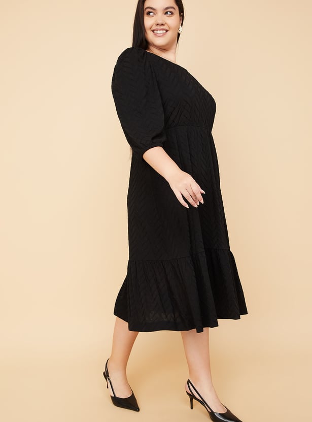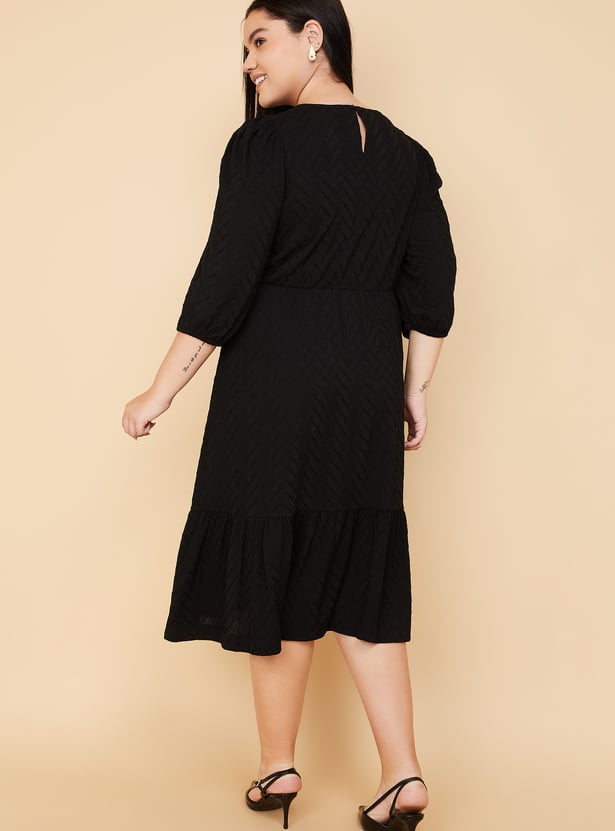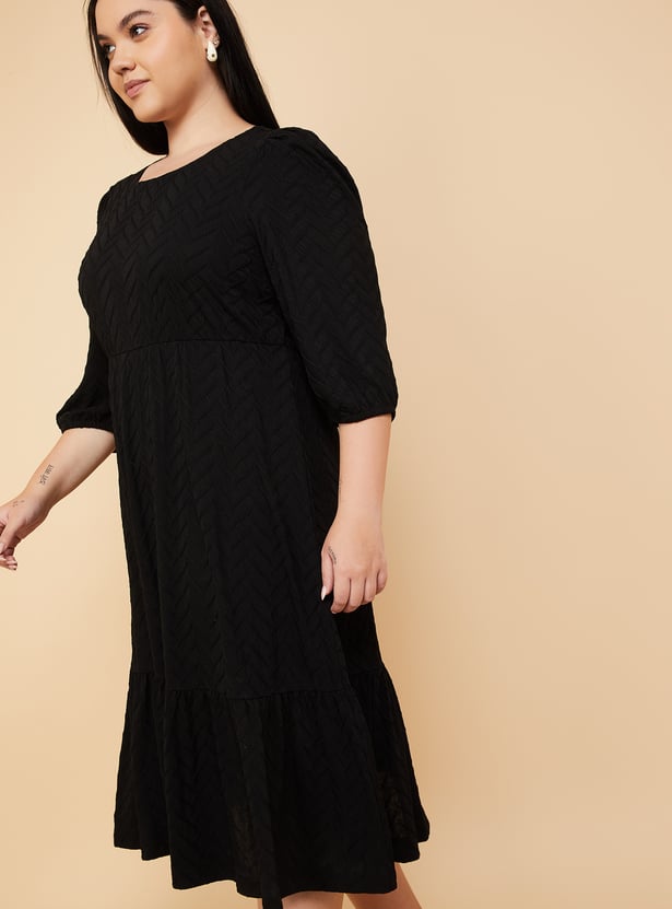 Step into everyday sophistication with this textured knit A-line dress, designed for comfort and style. Featuring a round neckline and three-quarter sleeves, it offers a flattering silhouette that moves with ease. The soft knit texture adds depth, while the A-line cut ensures a graceful drape—perfect for workdays, brunches, or casual evenings. Model Size :