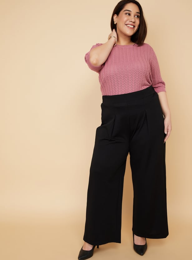 Upgrade your casual wardrobe with this trendy knit top. Boasting a chic round neck and stylish half sleeves, it's the perfect piece to add a touch of fashion-forward flair to your everyday look. Model Size :