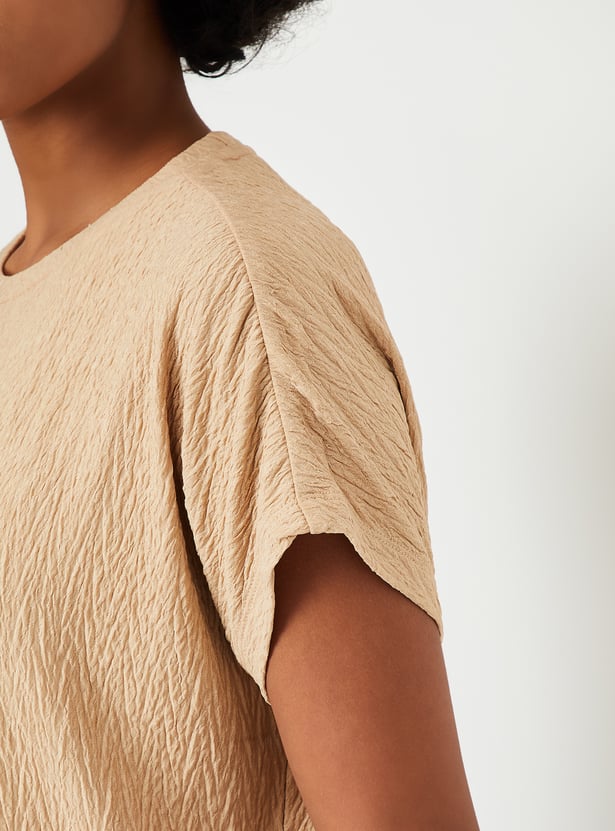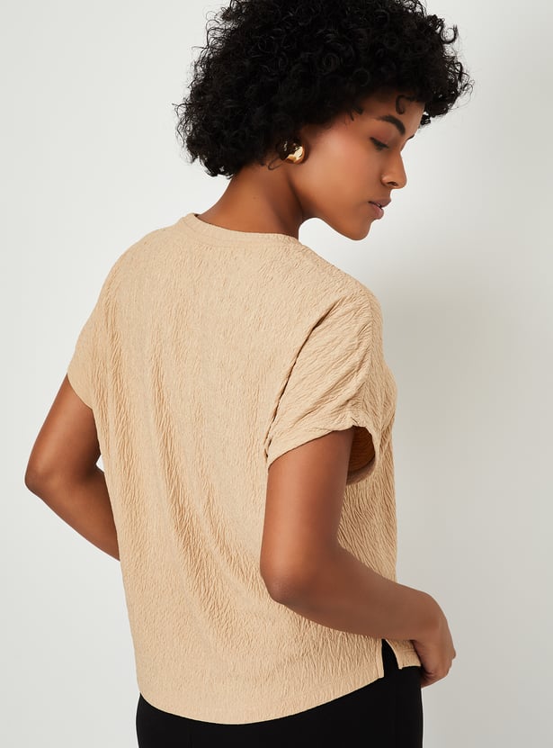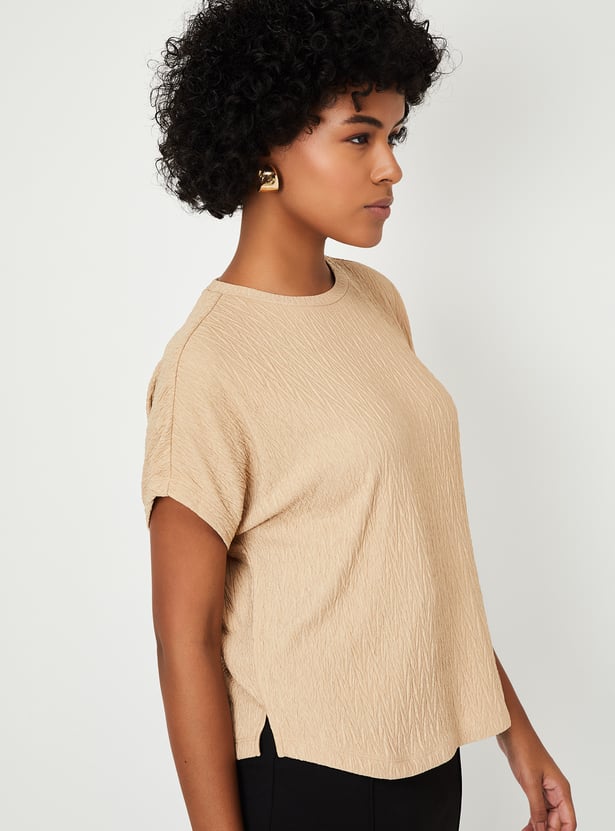 Elevate your casual wardrobe with this chic knit top, boasting a round neck and extended sleeves. Its versatile design makes it a go-to piece for a stylish, laid-back look.