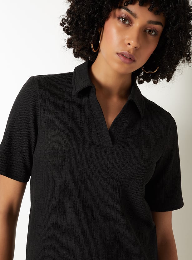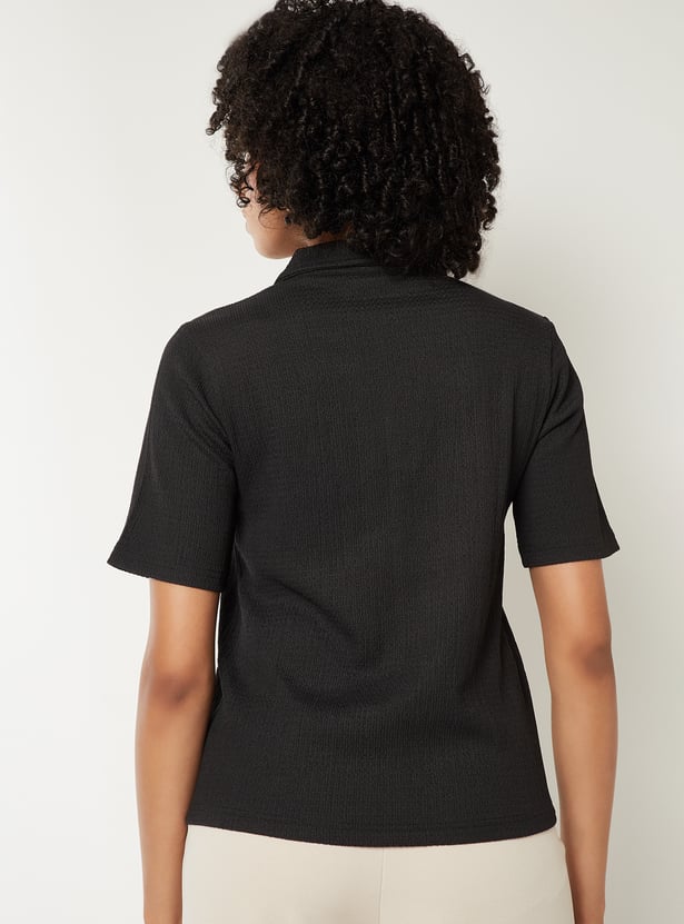 Elevate your casual wardrobe with this textured polo t-shirt, designed with a sleek Johnny collar and comfortable half sleeves. The subtle texture adds a touch of sophistication, making it a smart choice for both relaxed and refined settings.