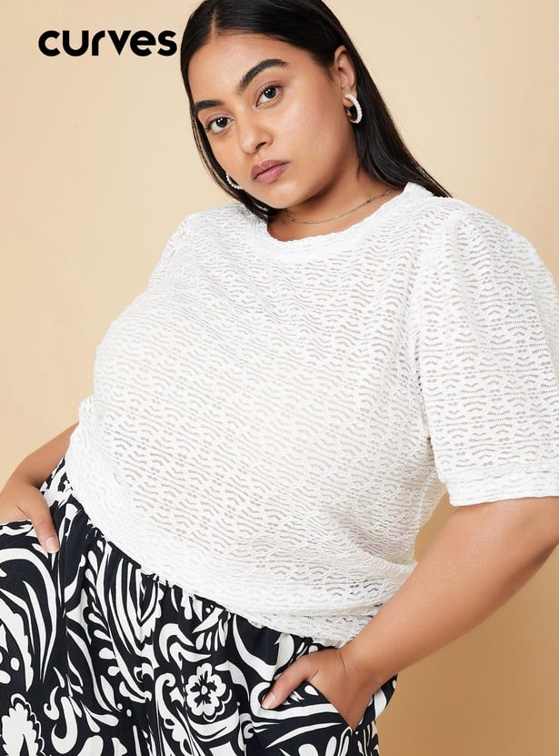 Give your casual wardrobe an elevated look with this top featuring a textured knit finish. It is fashioned with a round neckline and puffed sleeves.