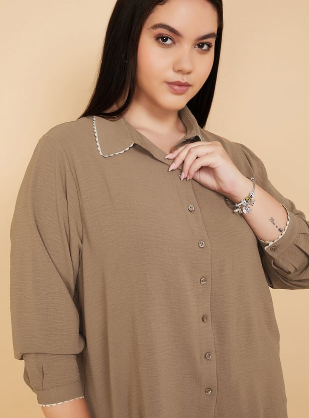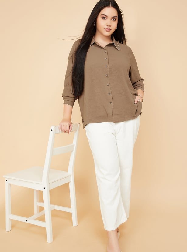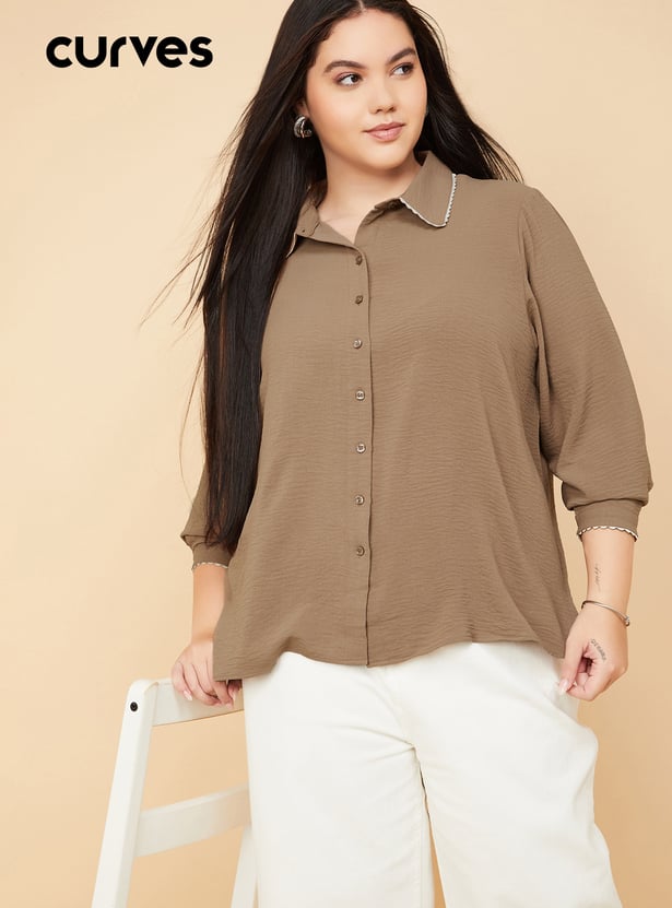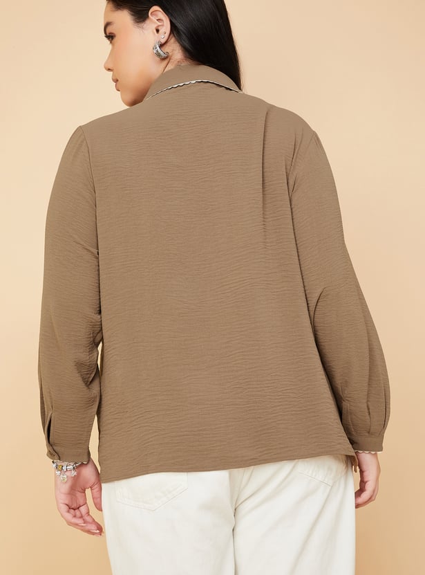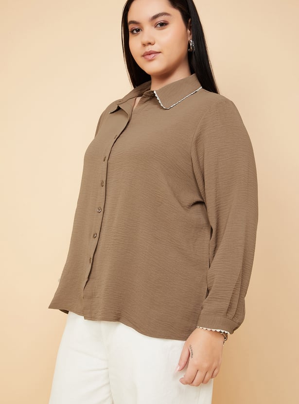 This textured shirt offers a refined take on everyday dressing. Designed with a button placket and full sleeves with button cuffs, it brings subtle detail and structure to your wardrobe—perfect for both work and weekend wear. Model Size :
