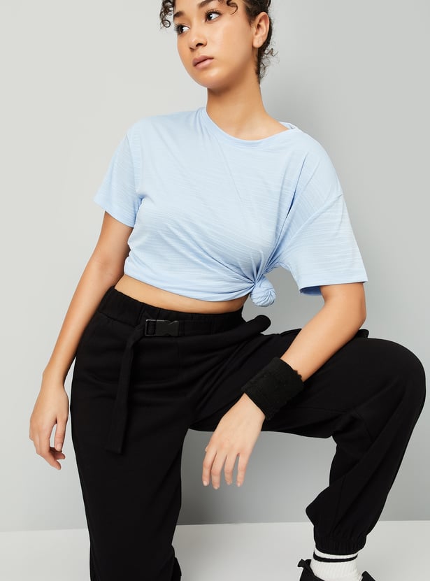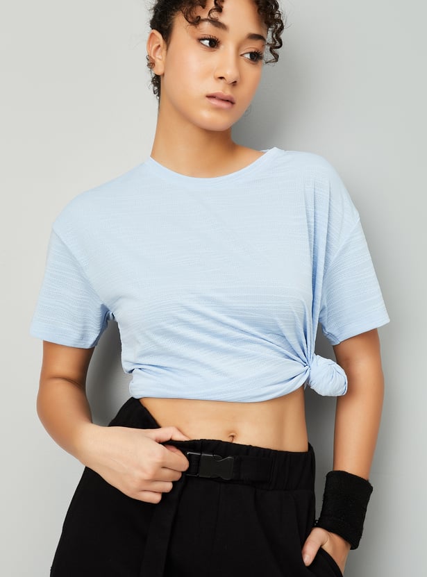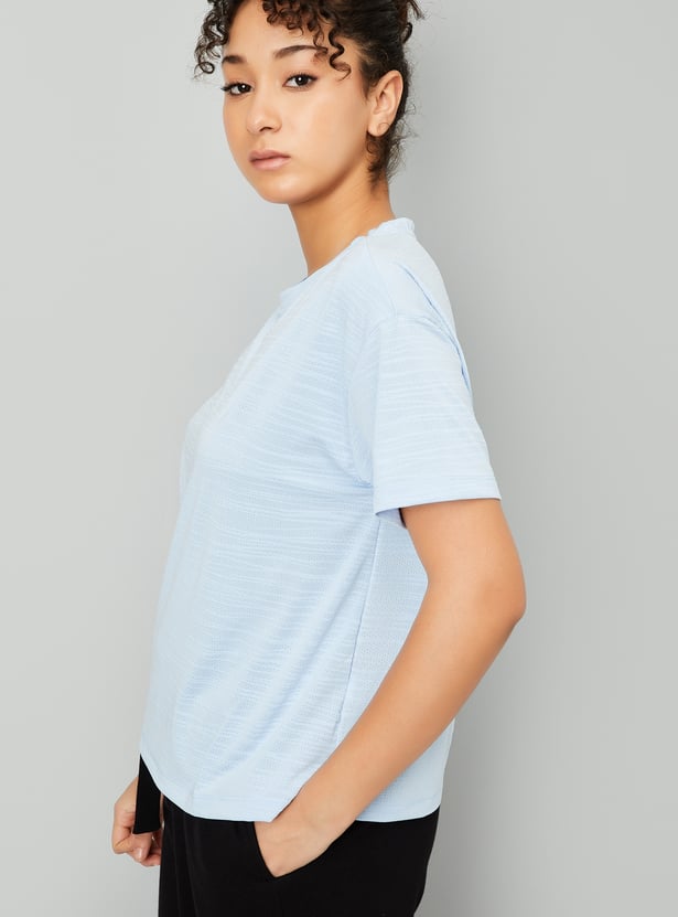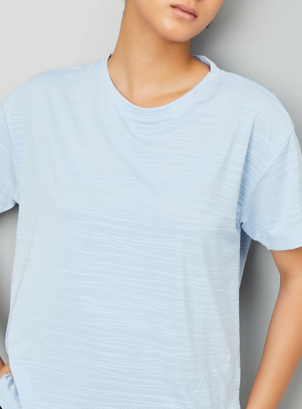 Boost your style credentials with this textured T-shirt, designed to make an effortless statement. Featuring a classic round neck and half sleeves, its textured surface adds a touch of sophistication while ensuring all-day comfort.