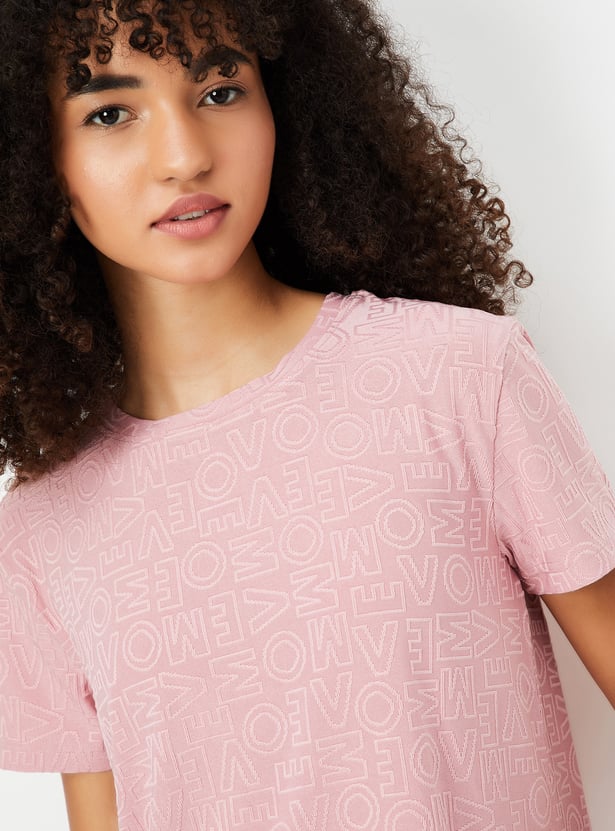 This textured sports T-shirt brings performance and style together. Designed with a classic crew neck and half sleeves, it offers a breathable and comfortable fit for active days. Model Size :