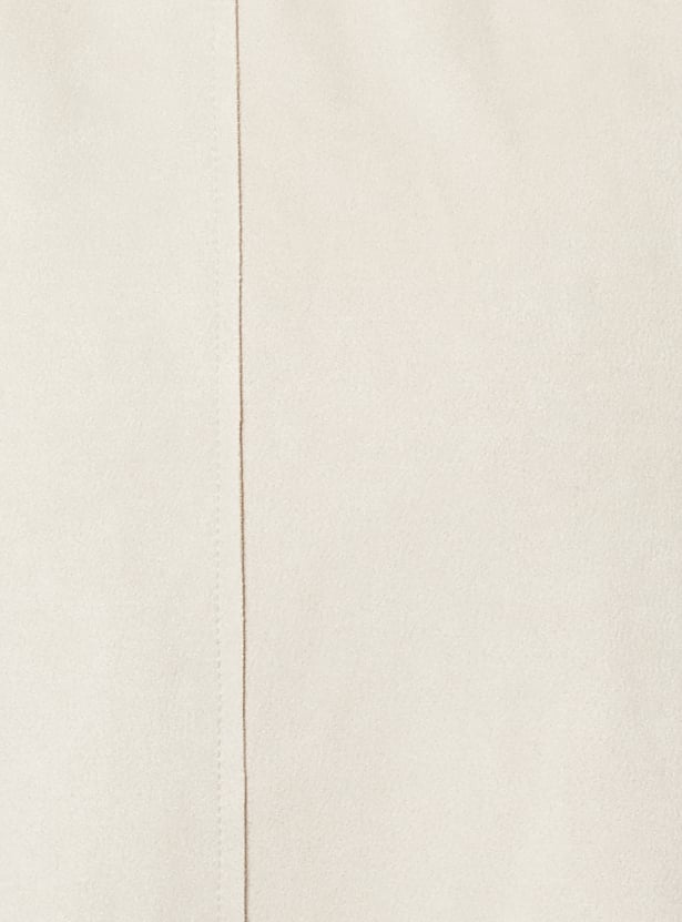 Elevate your outerwear collection with this textured suede trench coat, featuring a classic lapel collar, button closure, full sleeves, and functional pockets. The waist tie-up adds a flattering, adjustable fit for a timeless silhouette. Model Size :