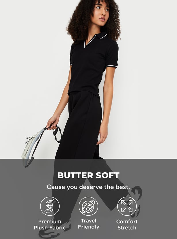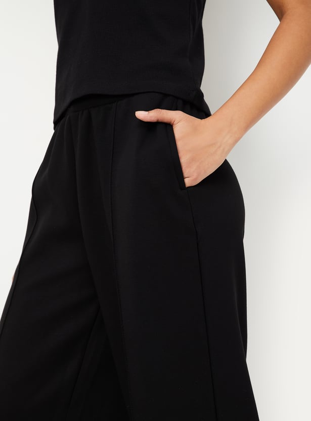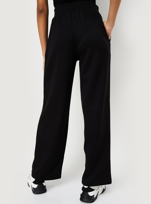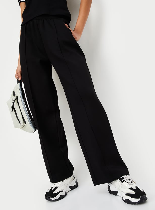 Stay comfy and stylish in these solid wide-leg sports track pants. With an elasticated waist and convenient insert pockets, they offer both comfort and practicality for your athleisure look.