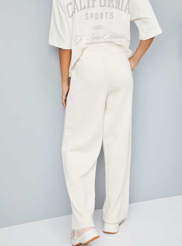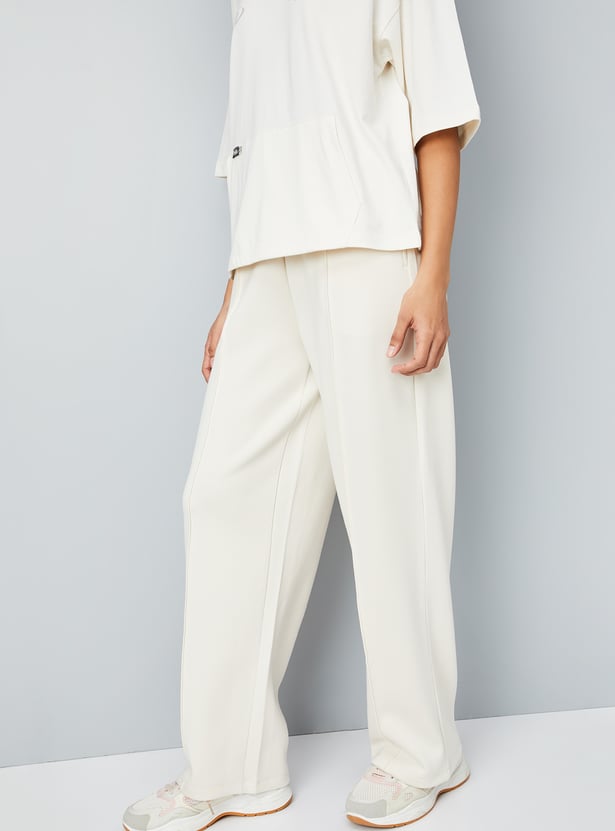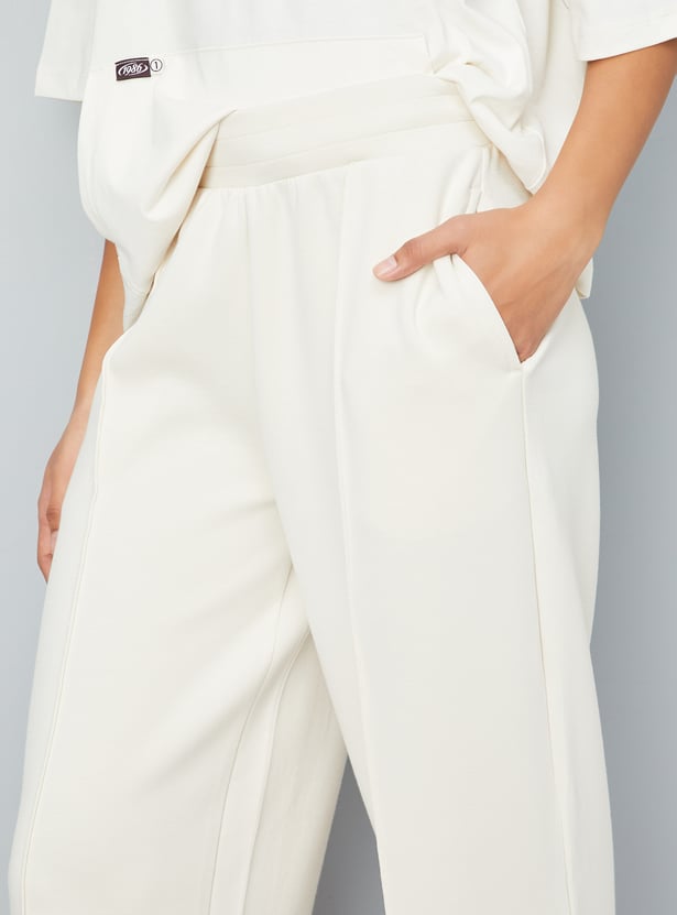 Stay comfy and stylish in these solid wide-leg sports track pants. With an elasticated waist and convenient insert pockets, they offer both comfort and practicality for your athleisure look.