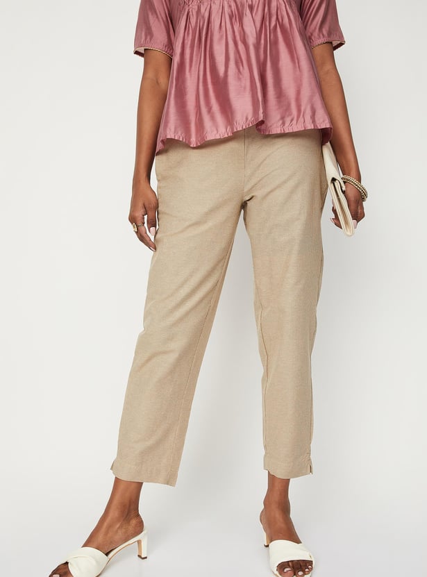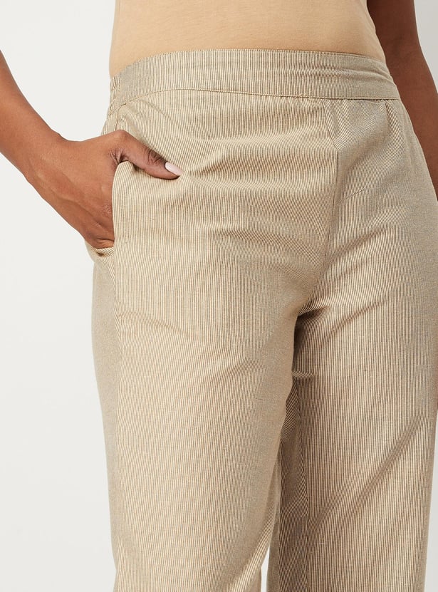 Women Woven Striped Straight Pants