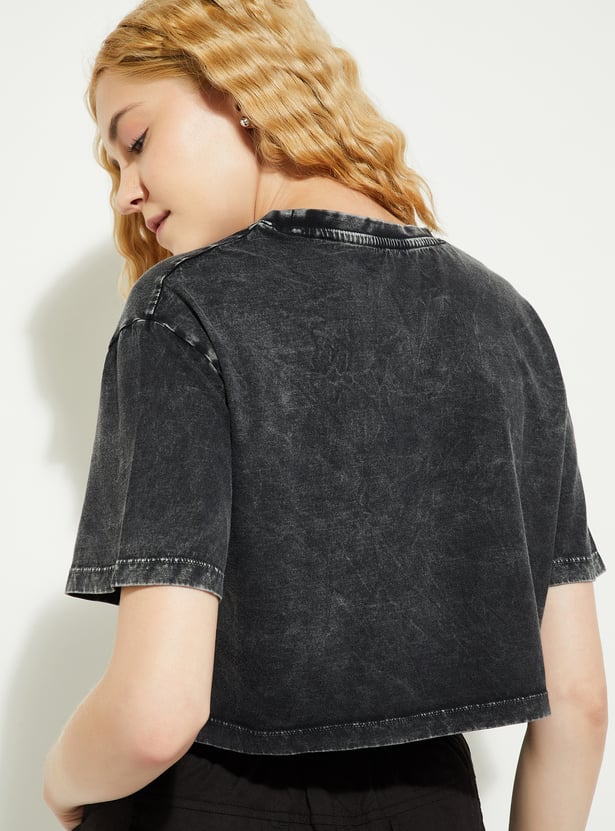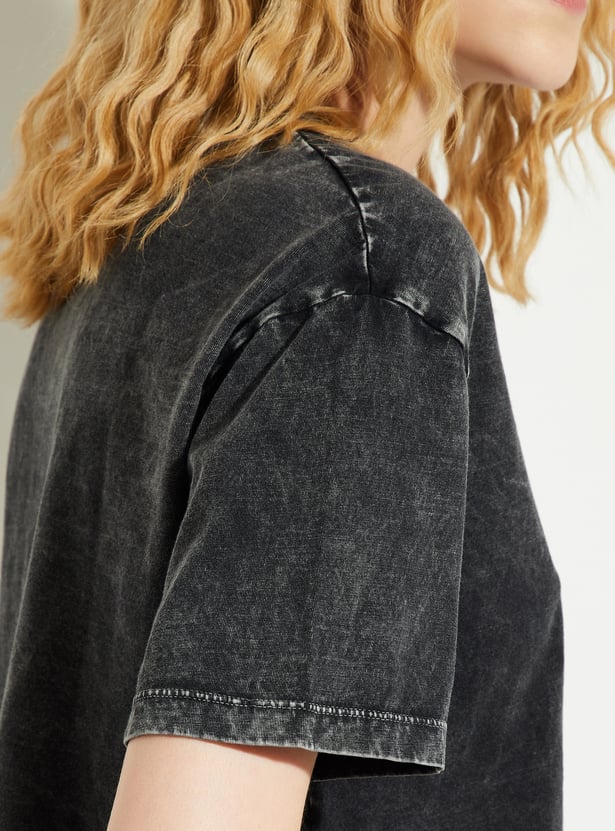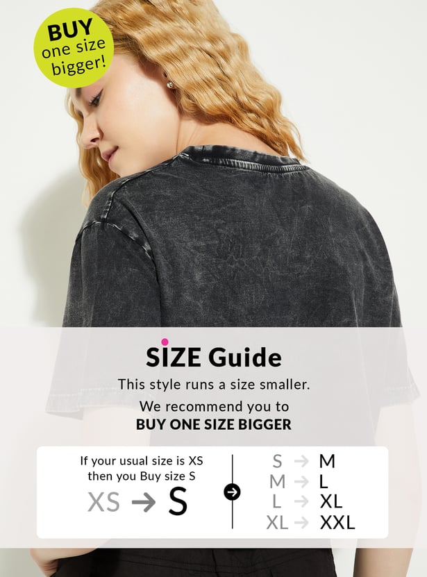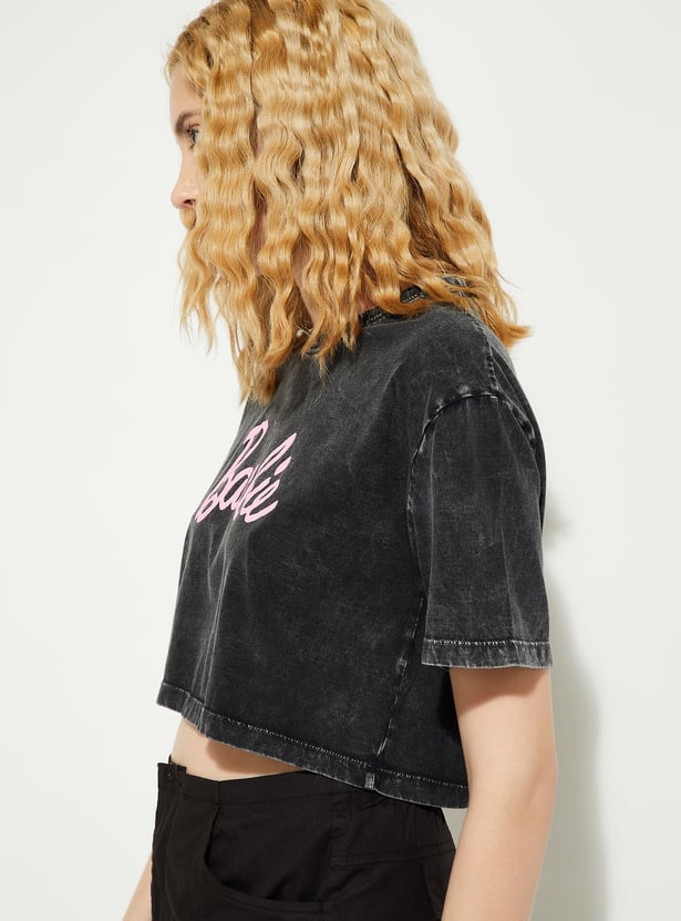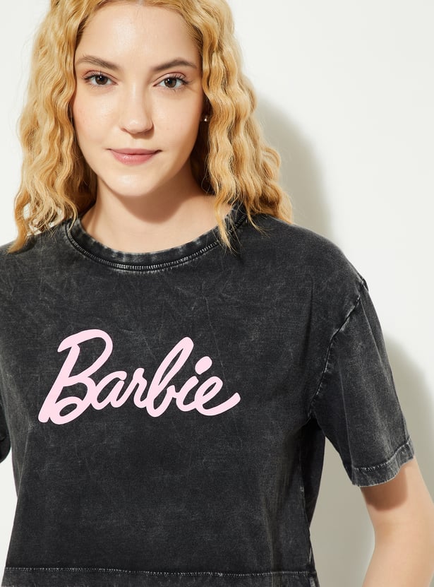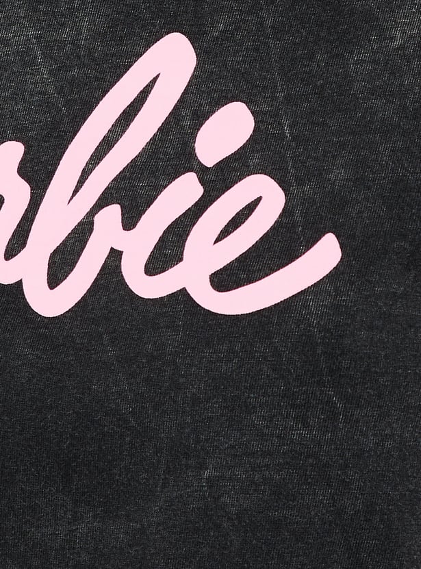 If you're all about making a statement with your style, this T-shirt is an absolute must-have. With a washed look and a fun Barbie typography print on the chest, it exudes nostalgic vibes. The boxy fit gives it a relaxed, on-trend feel.