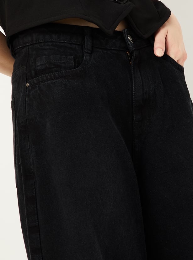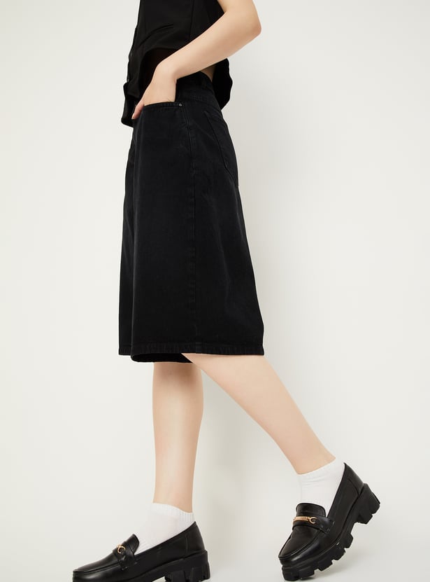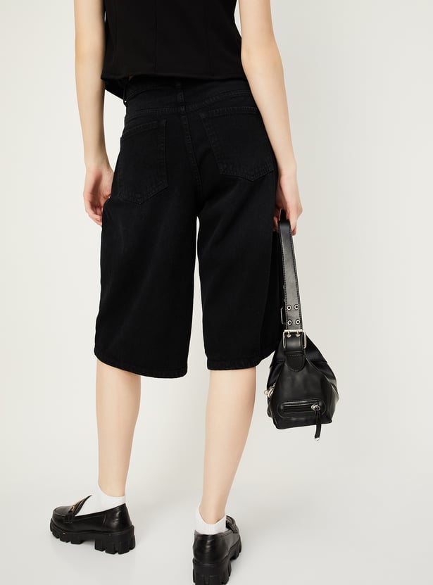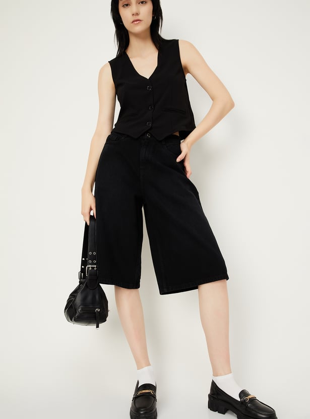 Level up your street style with these chic denim shorts, boasting a wide leg and five functional pockets that combine fashion with practicality for a versatile and stylish ensemble.