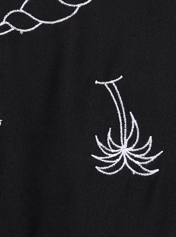 Step into effortless elegance with this embroidered shirt – designed with a classic spread collar, half sleeves, and a neat button placket that blends timeless tailoring with delicate embroidered detail.