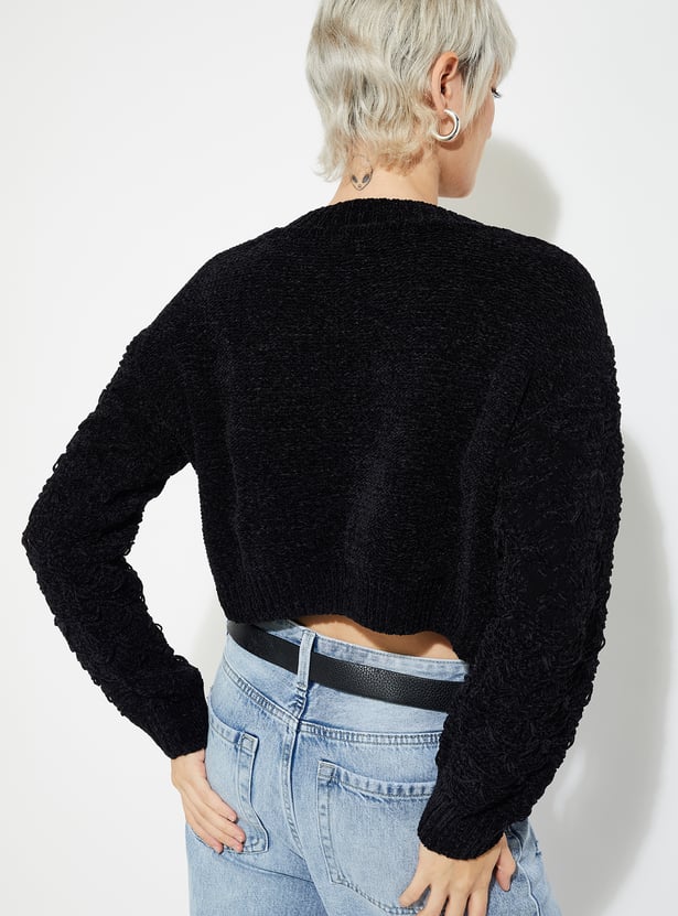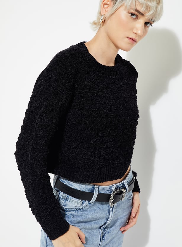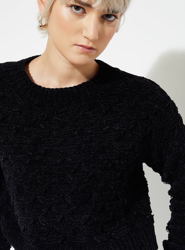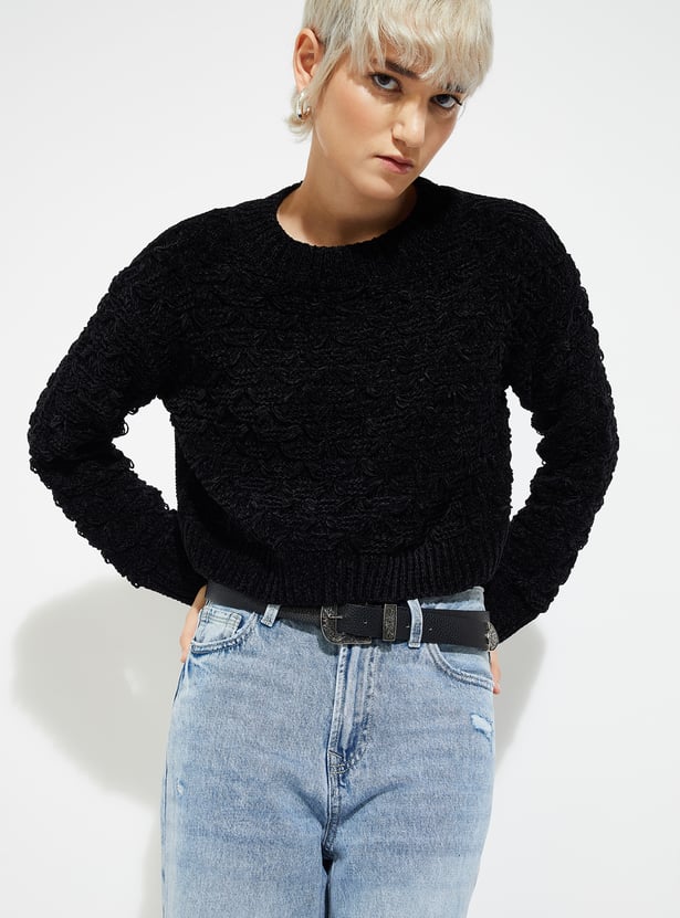 Stay cozy and stylish with this knit sweater, featuring a classic crew neck, full sleeves, and a ribbed hem for a snug, timeless fit.