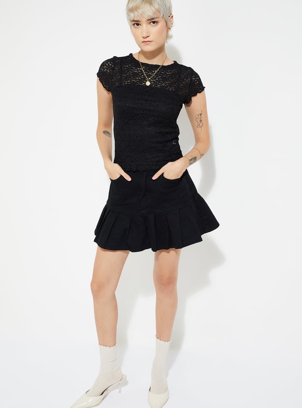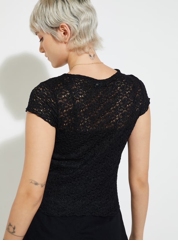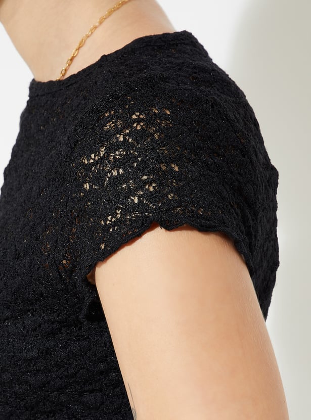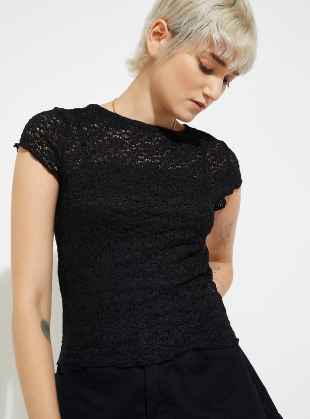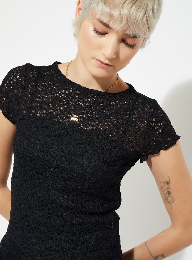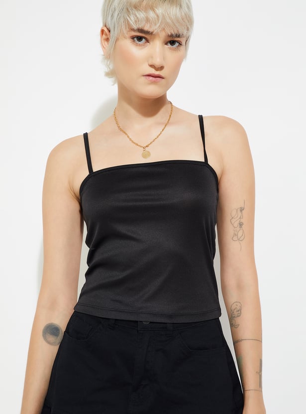 Add a touch of elegance to your everyday style with this knit top featuring a round neck and half sleeves, paired with a solid camisole with shoulder straps for a chic layered look.