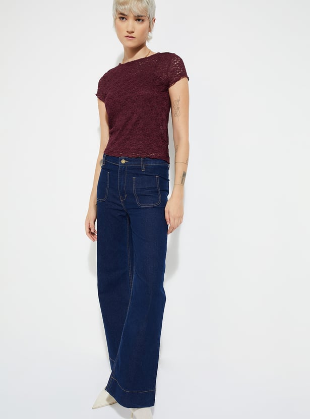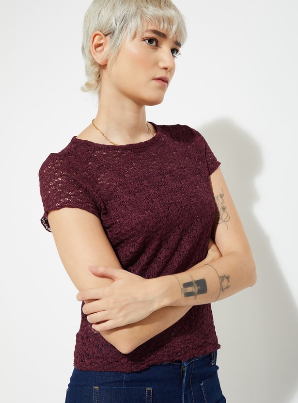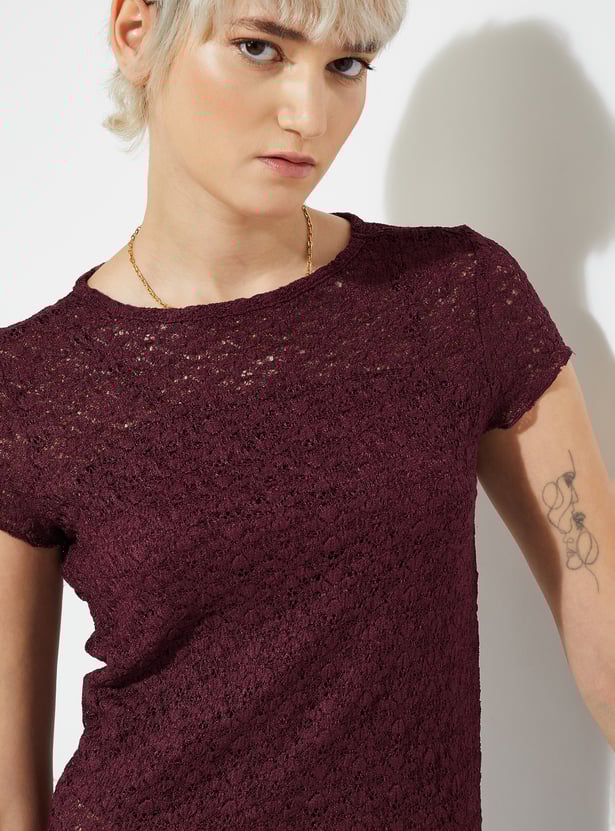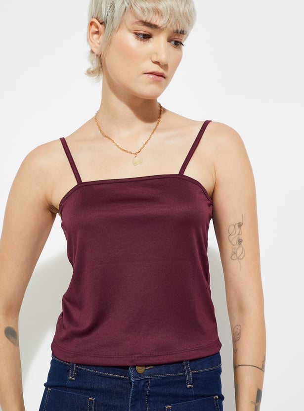 Add a touch of elegance to your everyday style with this knit top featuring a round neck and half sleeves, paired with a solid camisole with shoulder straps for a chic layered look.