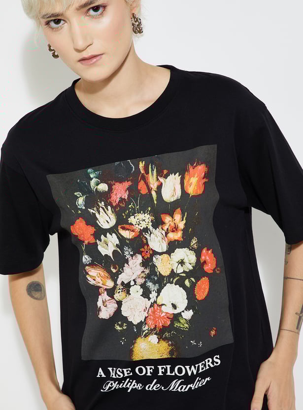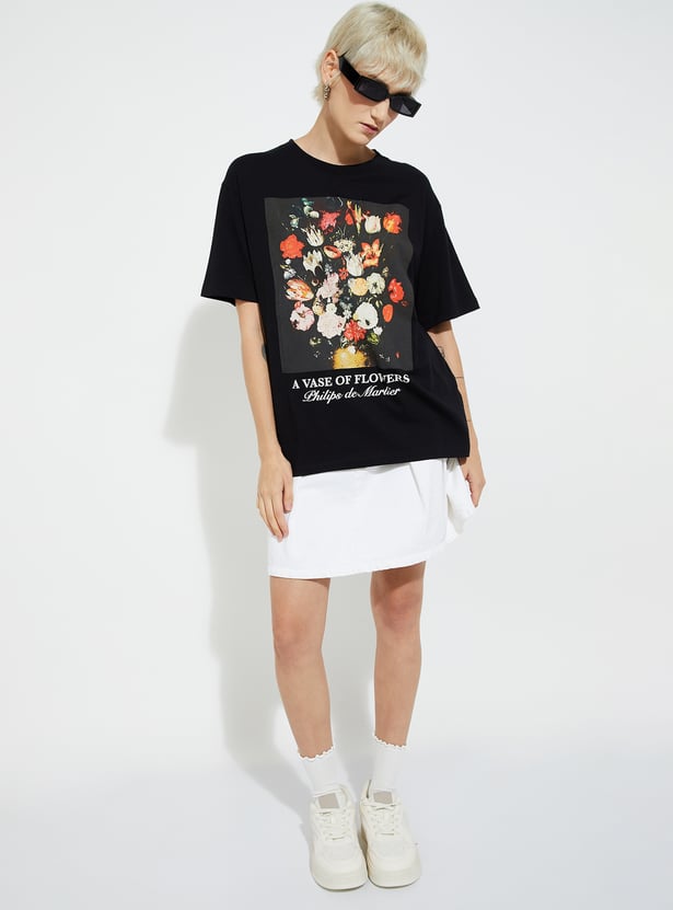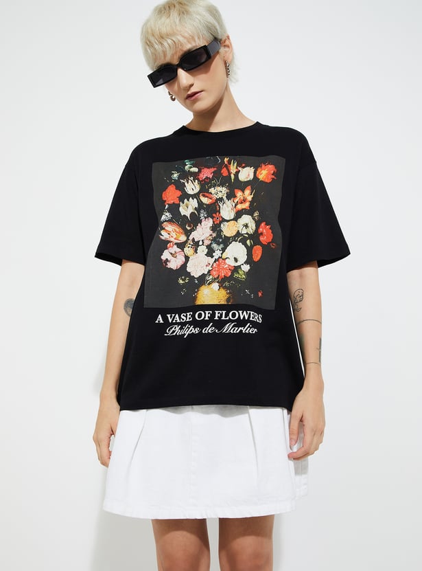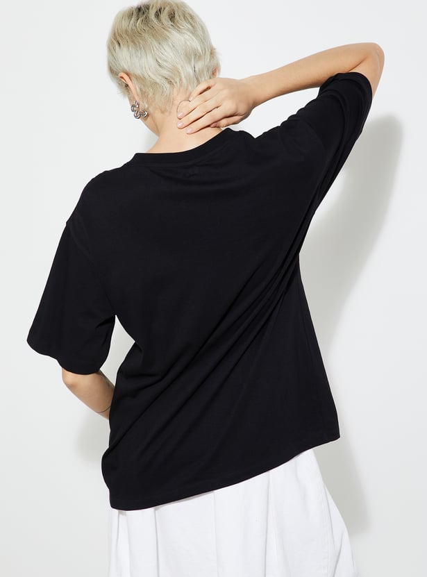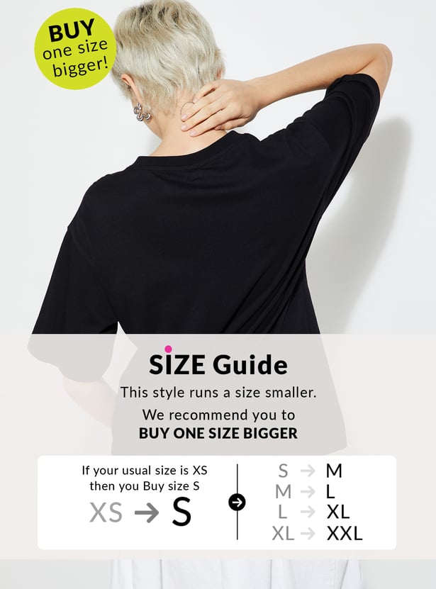 Unleash your inner vibe-chaser with this graphic print T-shirt. Designed for laid-back days and spontaneous style, this tee features a playful graphic print that adds personality to every look. The drop shoulders and half sleeves create an oversized silhouette that’s effortlessly cool and endlessly comfortable.