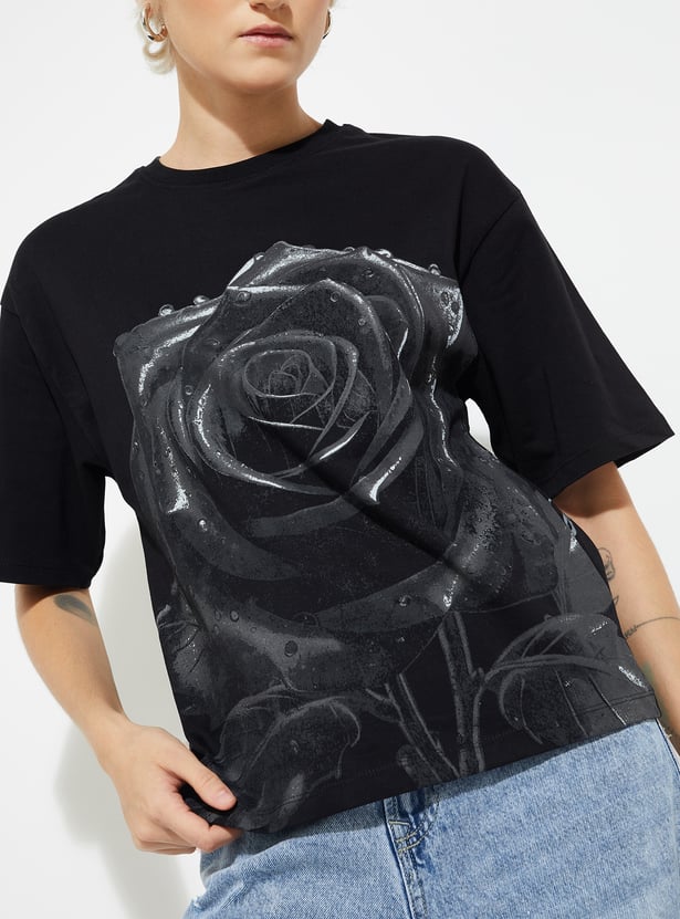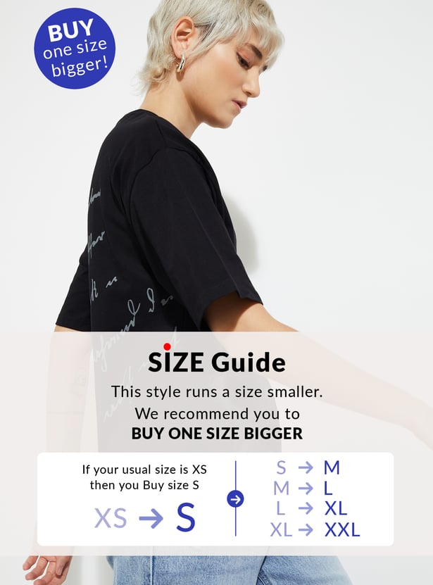 Elevate your casual essentials with this printed boxy fit T-shirt, designed with a classic round neck and half sleeves for effortless comfort and style.