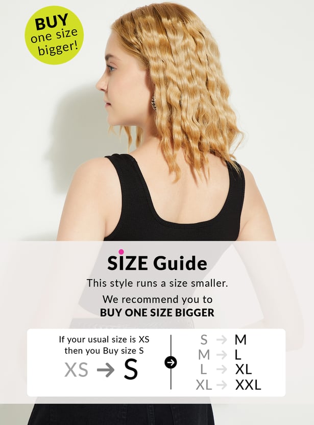 A wardrobe staple, this top is as versatile as it is stylish. With its sleek, ribbed knit construction and round neck, it’s perfect for layering or rocking solo. The sleeveless cut gives off major summer vibes, while the crop fit keeps things fresh and stylish.