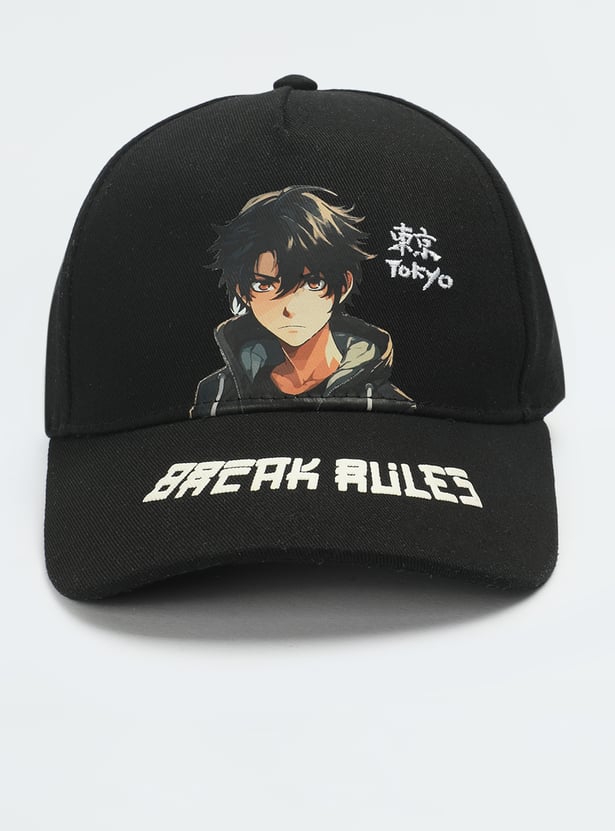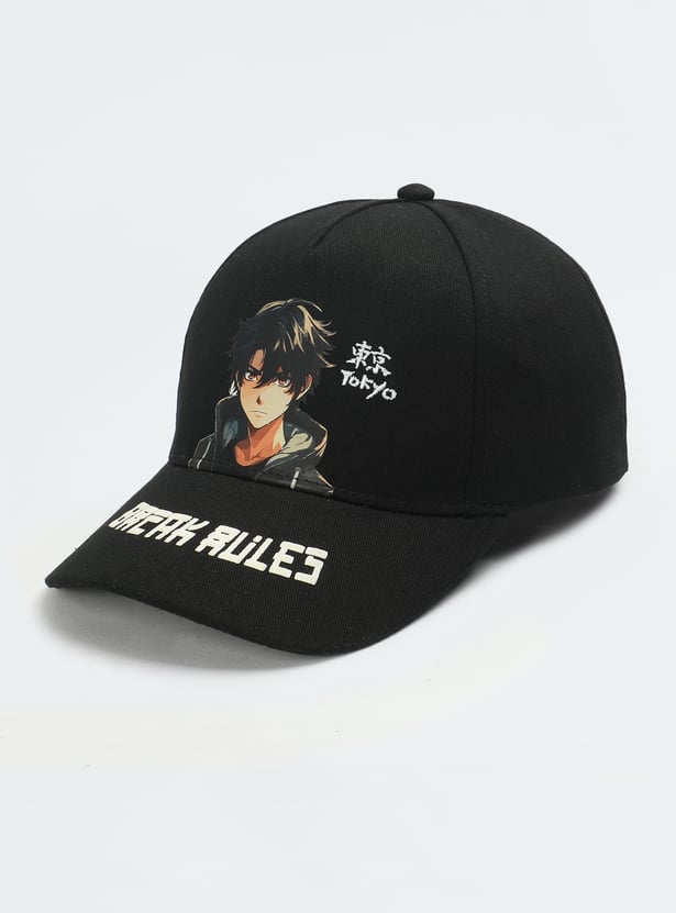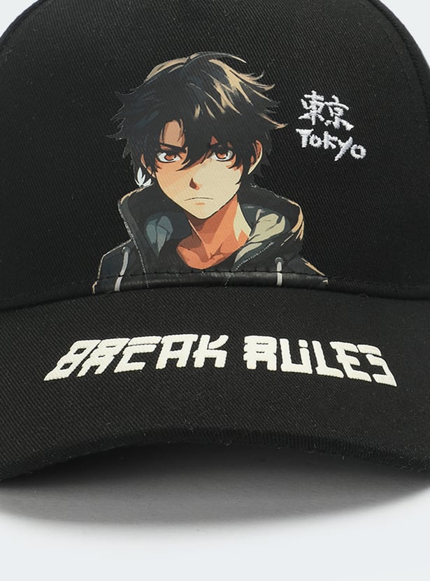 This baseball cap is a summertime favorite, blending fun and sporty vibes. It features an anime print, a curved brim, and a Velcro strap clasp for an adjustable fit.