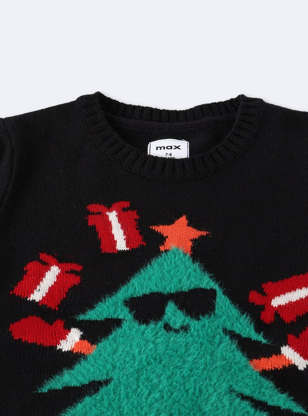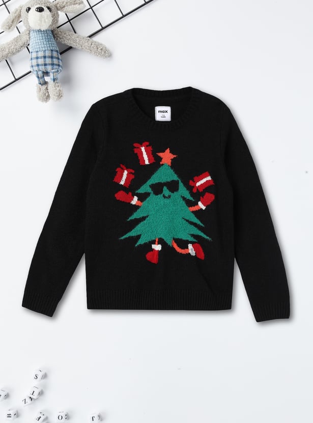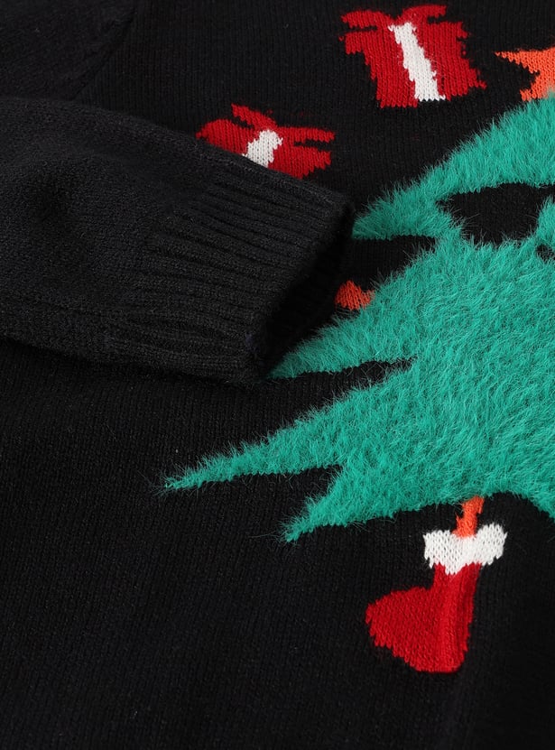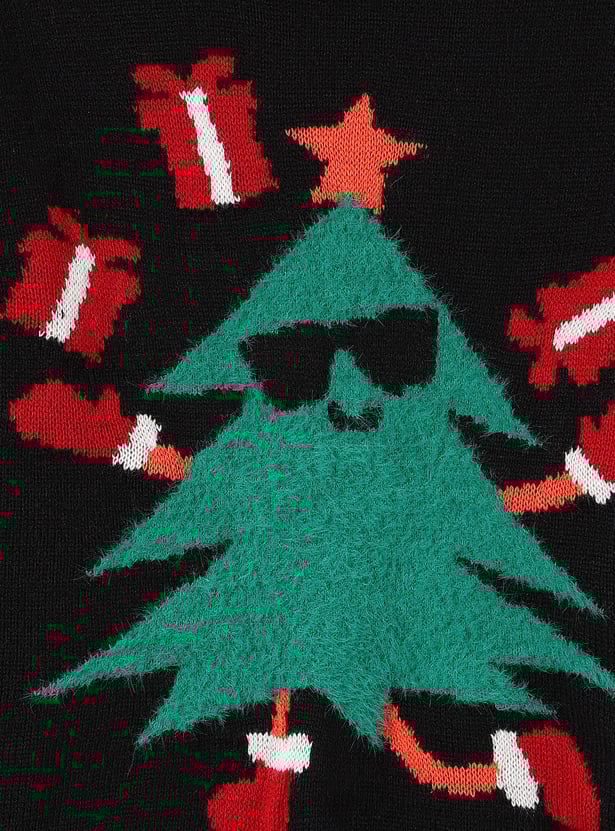 Let her celebrate the season in style with this sweater. Featuring a fun Christmas tree knit design, this pullover is perfect for spreading holiday cheer. It has a crew neck, full sleeves, and ribbed trim.