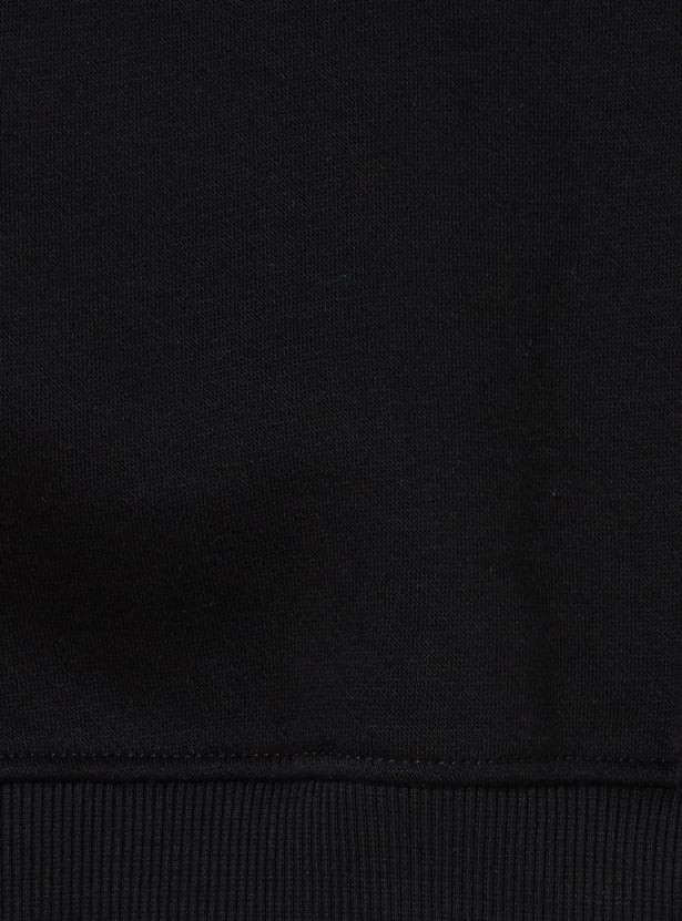 He’ll stay warm and stylish in this sweatshirt. It is highlighted with a colourblock design, a hooded neck, and full sleeves. The ribbed trim adds to the look.