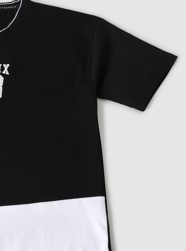 Elevate your casual wardrobe with this colourblock shorts set, designed for comfort and style. The crew neck, half-sleeve t-shirt pairs perfectly with the solid shorts featuring a drawstring closure for a customizable fit.