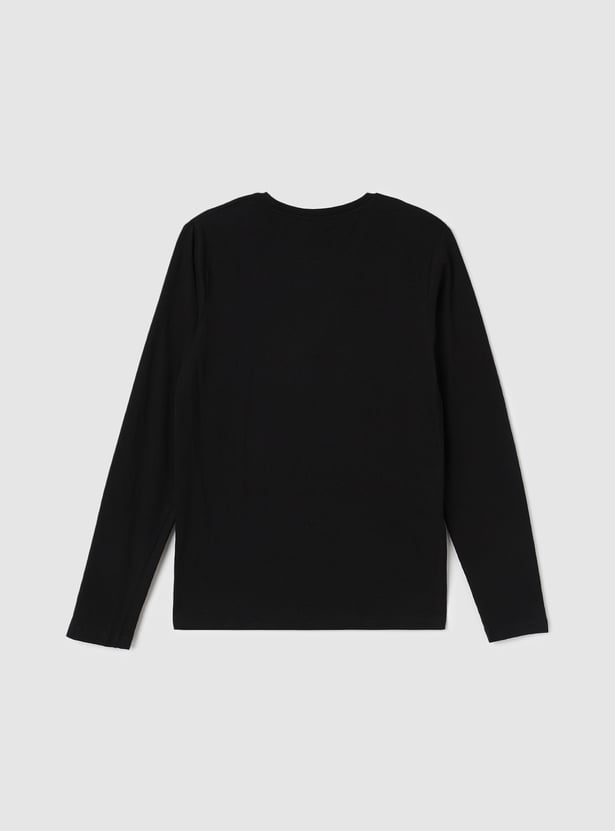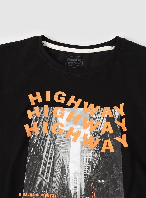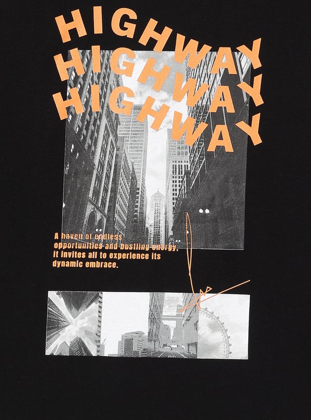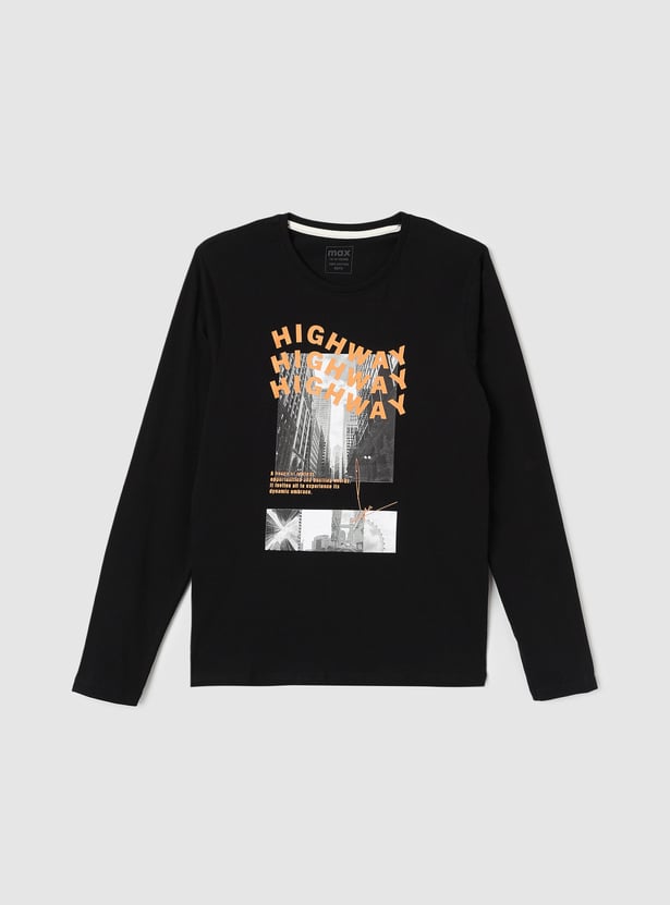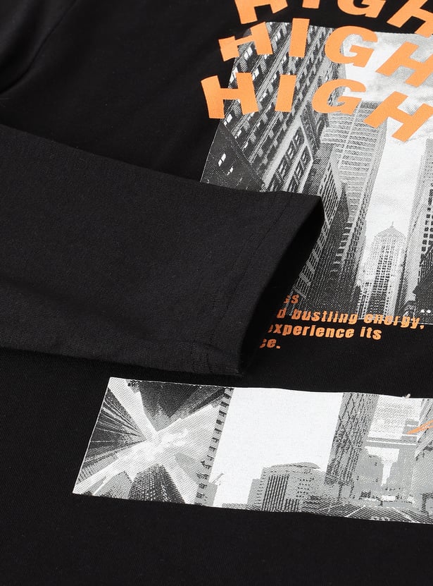 Upgrade his everyday wardrobe with this T-shirt. The photo print adds an eye-catching look. It has a crew neck and full sleeves.
