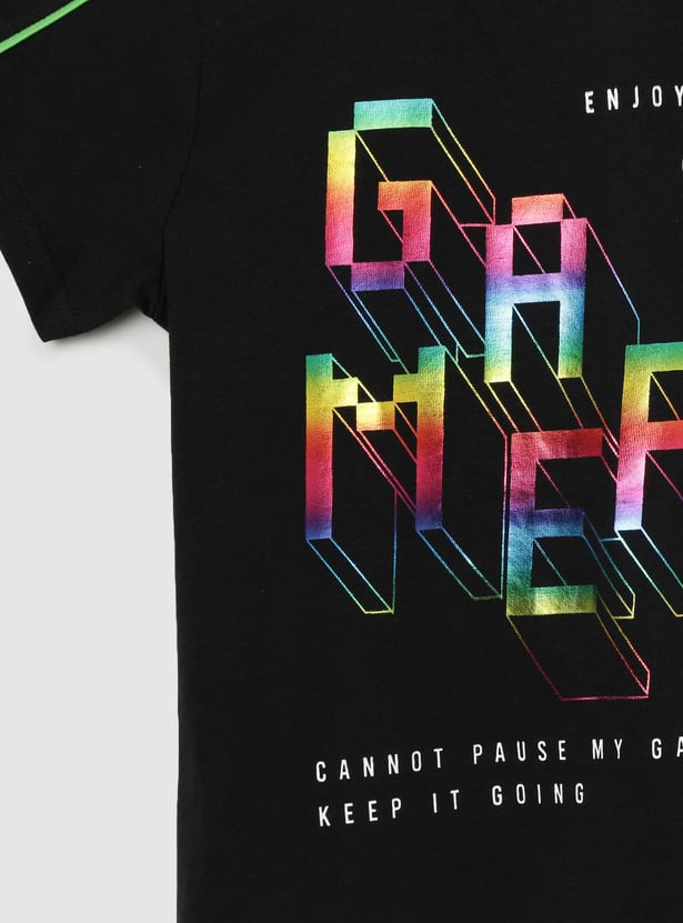 This stylish printed T-shirt with round neck and short sleeves is a must have in your child's casual collection.