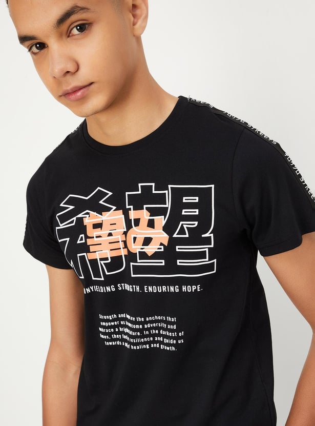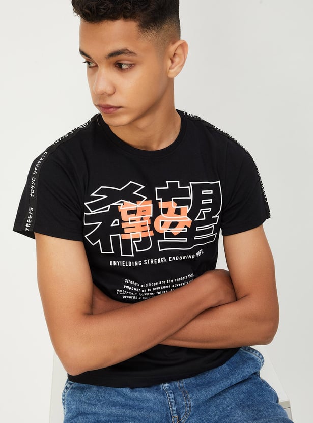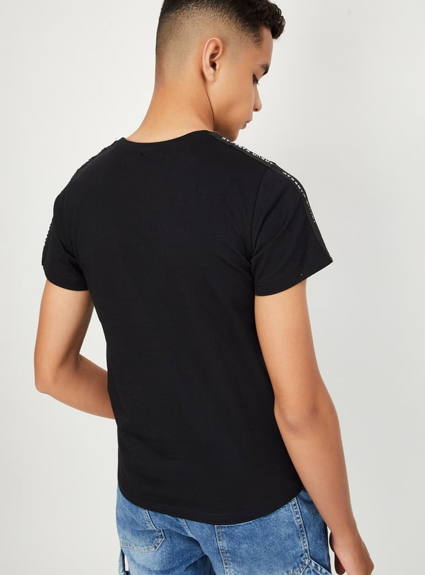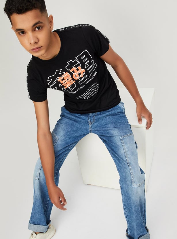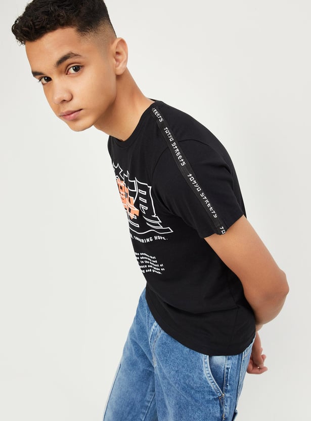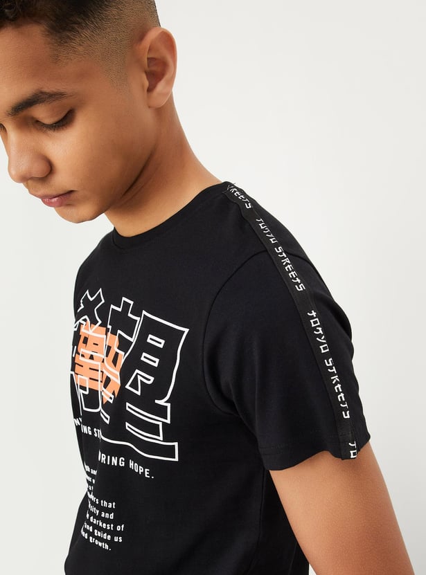 Get your little one vacation-ready with this comfortable and stylish graphic print T-shirt featuring short sleeves and a crew neck.