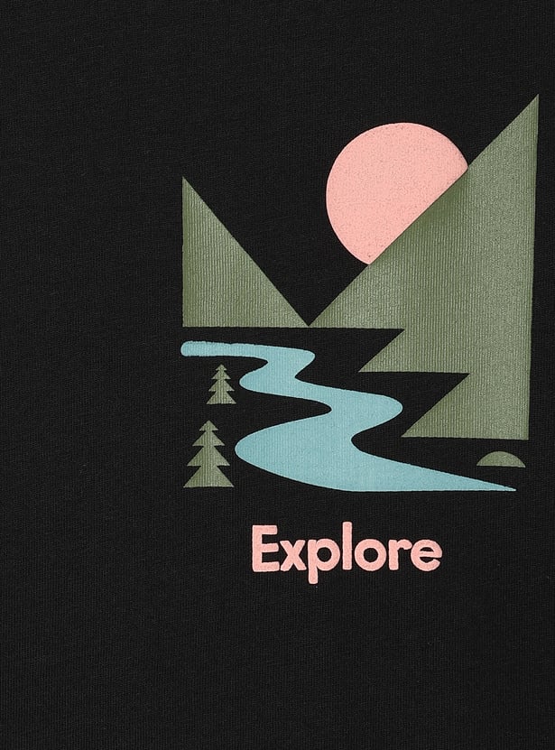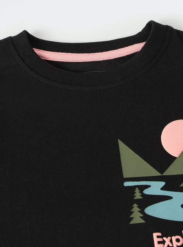 Get your little one vacation-ready with this comfortable and stylish graphic print T-shirt. Featuring full sleeves and a classic crew neck, it's perfect for laid-back days and fun adventures.