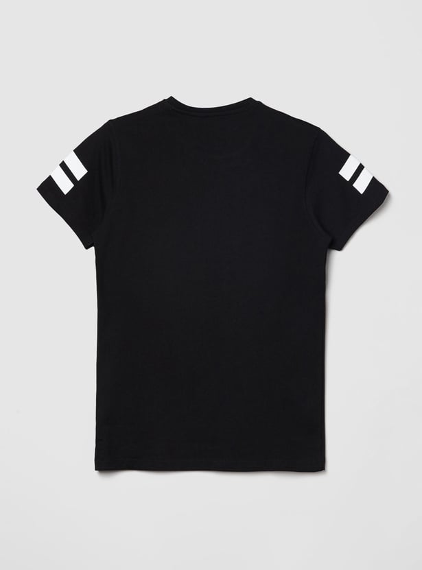 An ideal pick for your little one's wardrobe, this t-shirt will keep your kid comfortable throughout the day. It is detailed with print on the surface, short sleeves, and a crew neckline.