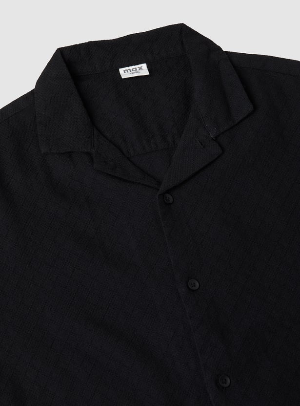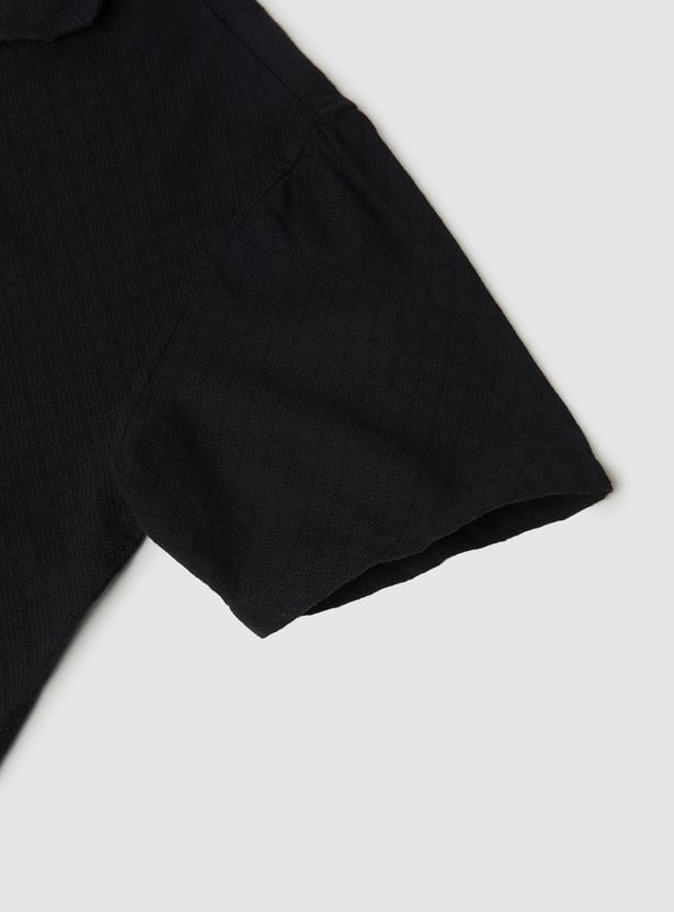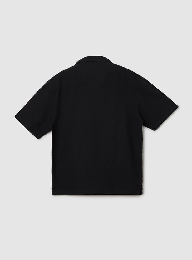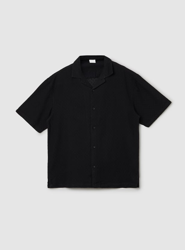 Embrace relaxed style with this knit oversized resort shirt. Featuring a resort collar, half sleeves, and a button placket, it's perfect for laid-back days or vacation vibes.